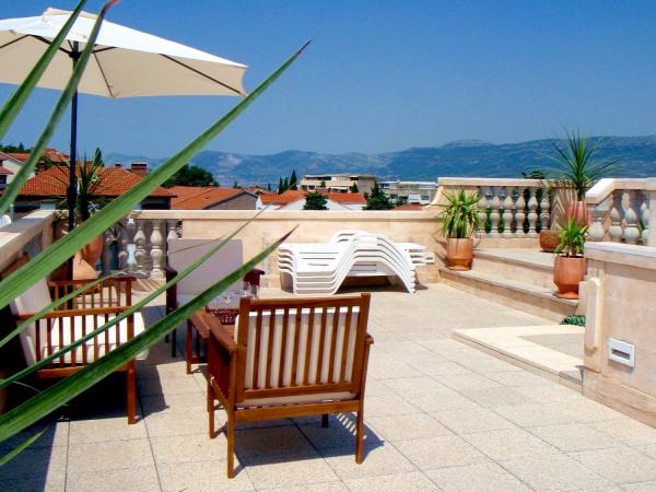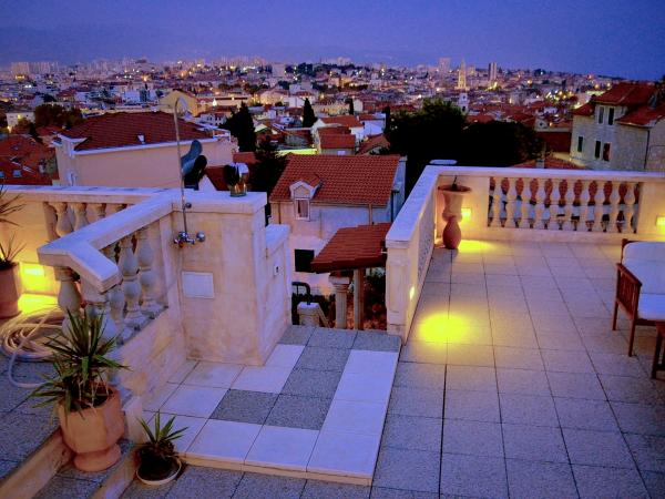 Wielki dwupoziomowy penthouse na drugim piętrze willi, 10 minut spacerem od wszystkich atrakcji turystycznych miasta Split. Składa się z 3 pokoi, 3 łazienki (z łazienką), pokój dzienny, jadalnia, w pełni wyposażona kuchnia, pokój z Pralka i suszarka do ubrań, dwa balkony, duży taras na dachu z widokiem 360 stopni na miasto, morze i okoliczne góry. Istnieje również bezpłatny parking (na życzenie) Zarezerwuj 7 dni i zapłacić za 6