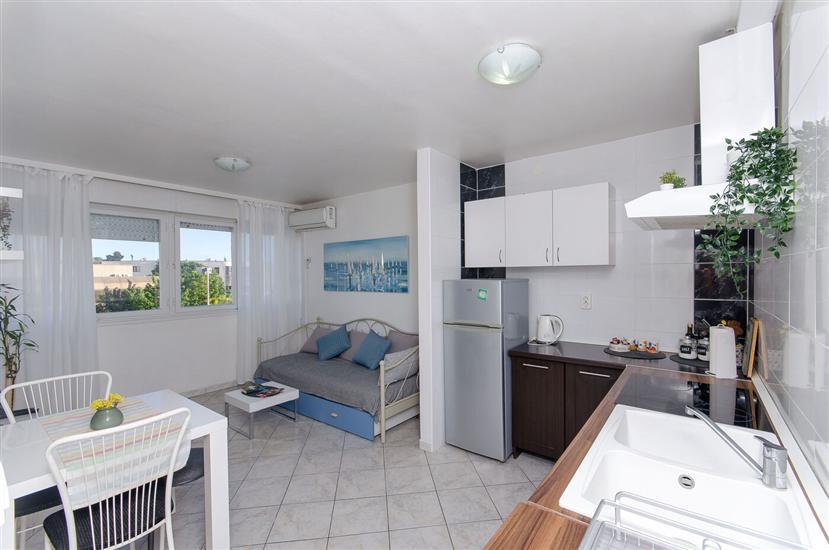 Zrelaksuj się z całą rodziną w tym spokojnym miejscu. Pierwszy apartament to nowoczesny, w pełni umeblowany, dwupokojowy apartament blisko centrum, ze słonecznym balkonem. Znajduje się w bardzo ładnej, centralnej części Splitu, zaledwie 10-15 minut spacerem od Starego Miasta i Pałacu Dioklecjana. To idealne miejsce dla osób, które łączą pracę zdalną z wakacjami: superszybki i niezawodny internet, telewizor Smart TV, miejsce do pracy, klimatyzacja, zmywarka, pralka, bezpłatny parking publiczny w pobliżu apartamentu. Idealny dla 3 osób. Drugi apartament znajduje się w pobliżu, 5 minut spacerem i składa się z sypialni, salonu z kuchnią i łazienki. Idealny dla dwóch osób, a trzecia może spać na sofie w salonie. Oferuje Wi-Fi, pralkę, klimatyzację i bezpłatny parking publiczny wokół budynku.