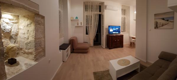 Położony w samym sercu Splitu, obok morza i 2 minut od wpisanego na listę UNESCO Pałacu Dioklecjana. Apartament Luxor jest w pełni umeblowane mieszkanie projektant ze ścianami 3, 1 metr, dając mu ogromny przestronne uczucie priliskom boravenja w mieszkaniu. Mieszkanie ma 52 m2, znajduje się na pierwszym piętrze (bez windy), w starym chronione budynku z 1921 roku. Posiada 1 sypialnię, WC oddzielne od łazienki, balkon 5m2. Luksor jest wyposażony w urządzenia wysoce technicznych we wszystkich obszarach zamieszkania. 50 Mbps www płaskim połączenia z szerokim modem WiFi podłączony do 2x narzędzie Samsung SMART 4k HD TV z preinstalowanych aplikacji Android. Falownik LG klimatyzator z opcją grzania.
