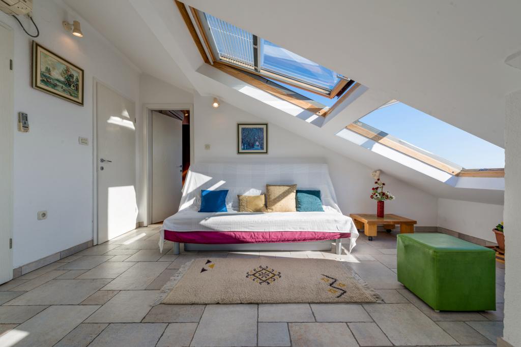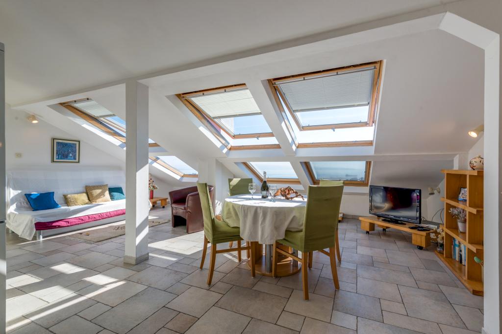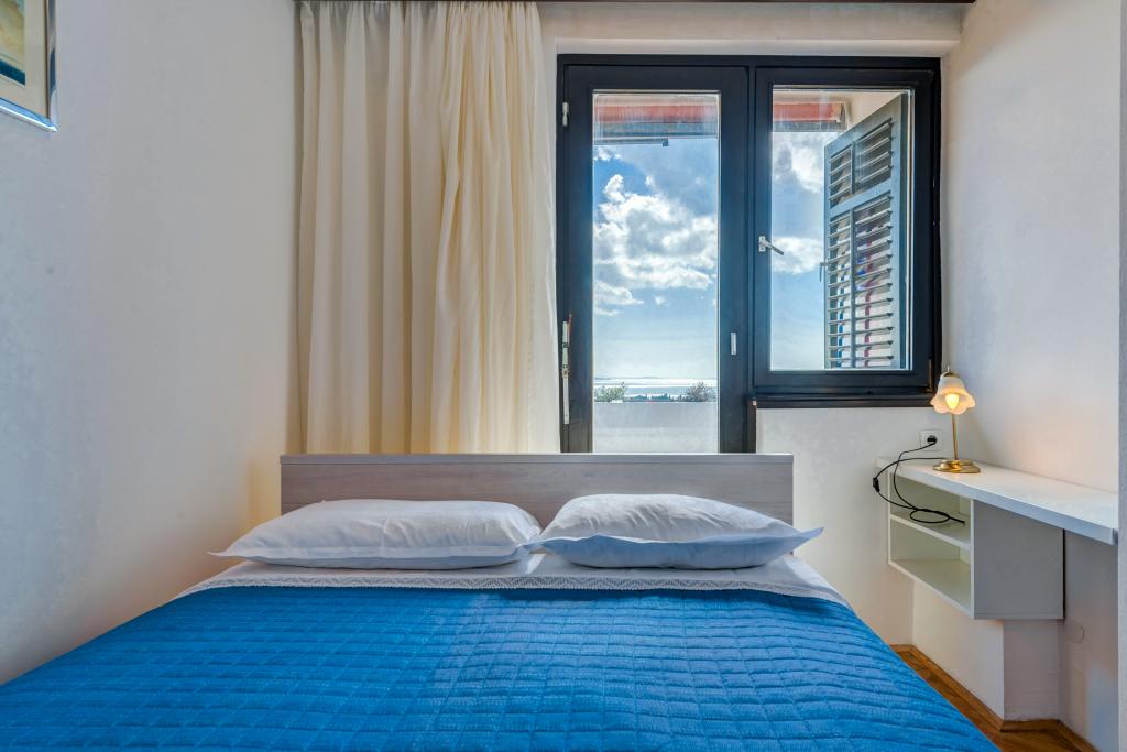 Są to niezwykle słoneczne apartamenty, zlokalizowane w najlepszej dzielnicy mieszkalnej w Splicie (Meje). Z apartamentu roztacza się piękny widok na port, klub żeglarski i wyspy. Znajduje się w cichej uliczce wśród sosen w parku Marjan. Apartamenty znajdują się 5-10 minut spacerem od centrum Splitu (200m) i 10 minut spacerem od bardzo popularnej plaży, basenu i klubu jachtowego ACI. Apartament Sun 1 ma trzy sypialnie (2 z podwójnym łóżkiem i 1 z pojedynczym łóżkiem), jadalnię, kuchnię, łazienkę, toaletę, przestrzeń 110m. Ten apartament posiada również taras z kwiatami o powierzchni 50m. Apartament Sun 2 ma dwa pokoje, które są ze sobą połączone. Idealny dla dwóch osób i dziecka do 12 roku życia. Ta lokalizacja, wyposażenie i piękne widoki na morze i wyspy sprawiają, że można poczuć się jak na wsi i jednocześnie w mieście. Słoneczna południowa strona, Park Leśny Marjan to zielona oaza i centrum rekreacji miasta. To idealne miejsce do jazdy na rowerze, biegania i innych aktywności na świeżym powietrzu. Oba apartamenty mają osobne wejścia i dziedziniec z wejściem od frontu.