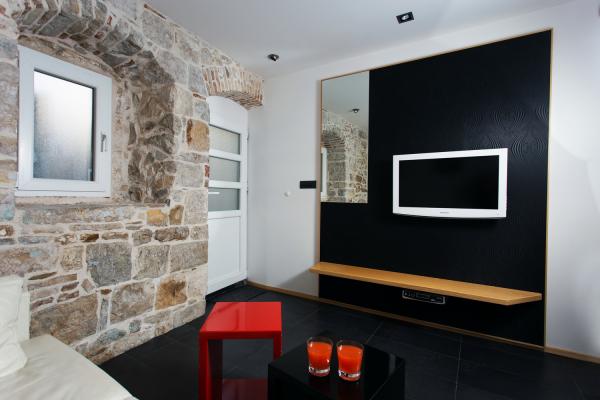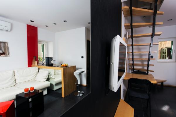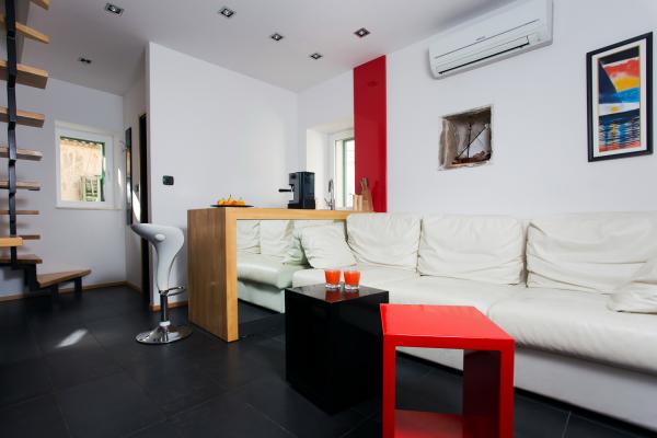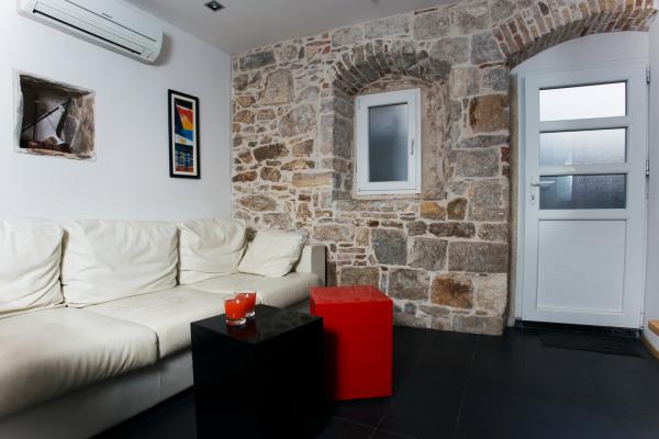Apartamenty Morskie Położony w samym centrum Split, w starej części zwanej Radunica. Radunica jest jednym z najbardziej znanych części starego miasta i tradycji antyku, domowej rozrywki i relaksu zachowała się do dnia dzisiejszego! W tym samym czasie, i co roku w ostatnim tygodniu szóstego miesiąca organizowane Radunice uwagę na ludzi pamiętających stare czasy, zobaczyć twarze niemal zapomniane, i przyjemny sposób Dalmacji staromodny sposób z ryb, wina i oczywiście listem ludowej. Cóż, w tym duchu powstał i apartamenty Marine. Znajdują się one w 300-letniego domu z kamienia w pobliżu Duplancica pałacu, wyremontowany od podstaw do nowoczesnego luksusu w sposób, który zachowuje starą ducha, który daje poczucie spokoju i ciepła. To tylko niektóre 2-3 minut spacerem od słynnego Pałacu Dioklecjana, który zapewnia możliwość każdego dnia obudzić się ponownie i odwiedzić stare piwnice, tunele i inne zabytki warte każdego widoku. Znajduje się również kilka minut spacerem do portu promowego w Splicie.