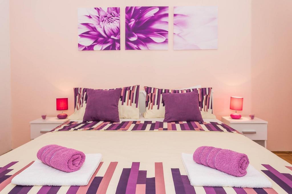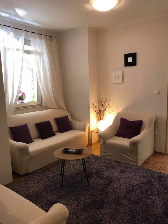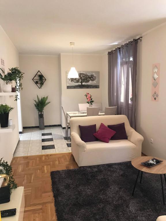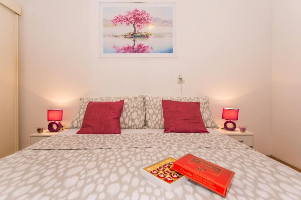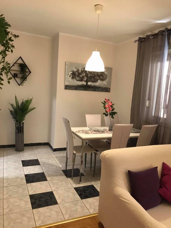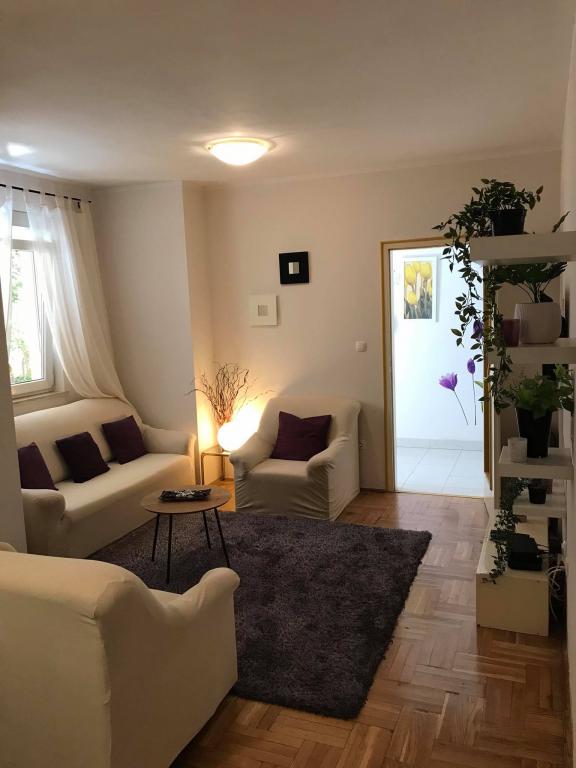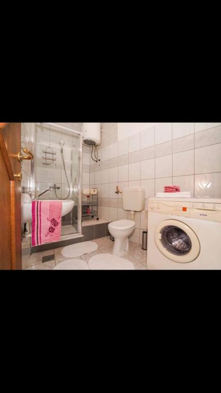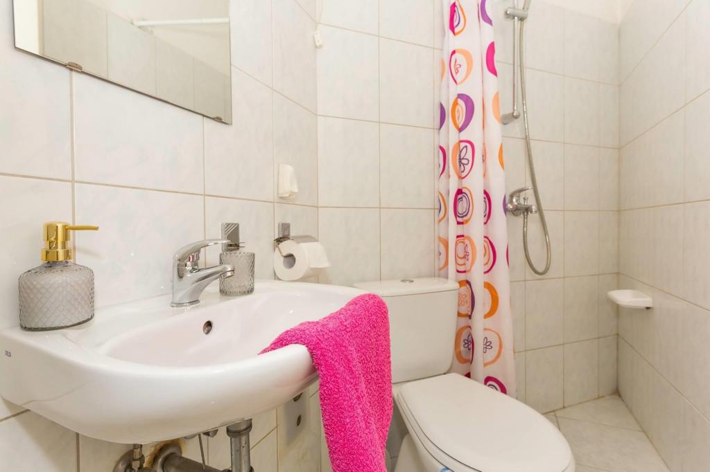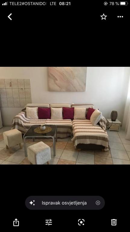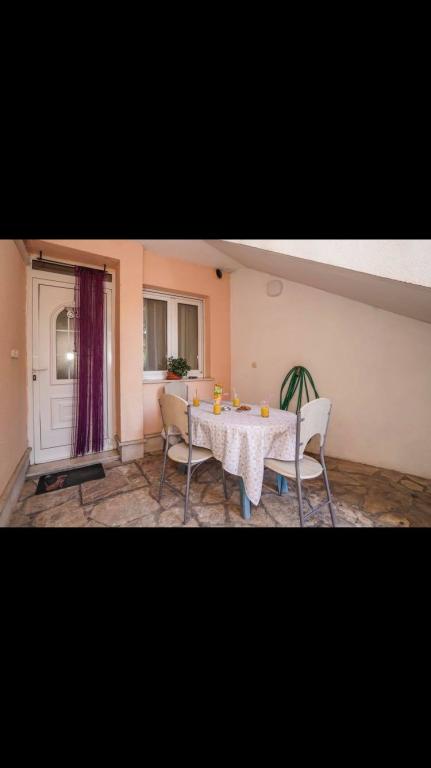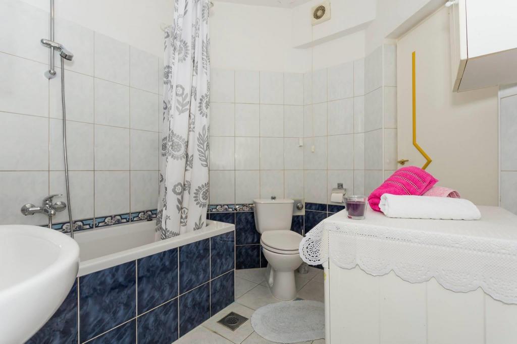 Mieszkanie znajduje się w pierwszym rzędzie do morza w nowym budynku. W apartamencie znajdują się dwie duże sypialnie z podwójnymi łóżkami, dwie toalety, kuchnia, jadalnia, salon i taras. Apartament znajduje się 200 m od pierwszej żwirowej plaży i 300 m od piaszczystej plaży. Odległość do pierwszej kawiarni i restauracji to mniej niż 100 m, kawiarnia Renato, bar tenisowy i Mythos, restauracja Velo Misto i Barkarola. Odległość do centrum miasta to około 20 minut pieszo. W odległości 100 m znajdują się korty tenisowe do wynajęcia.