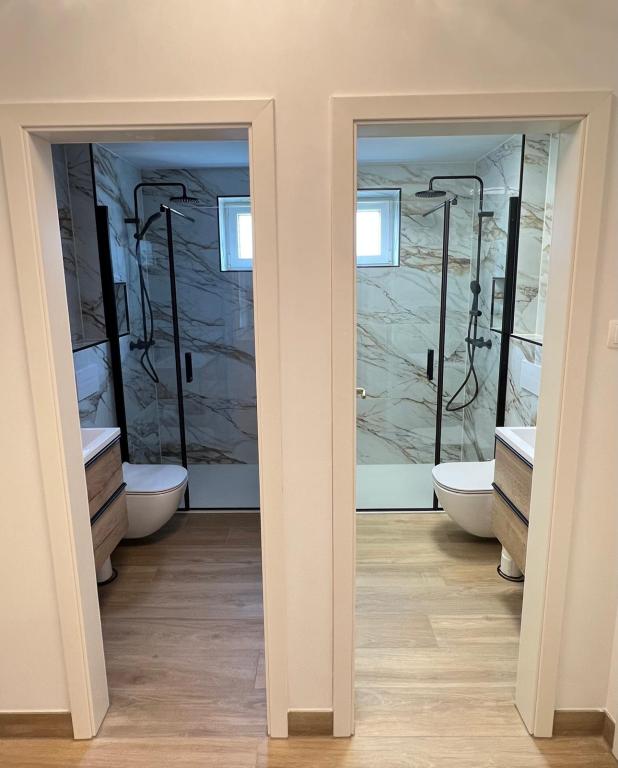Świetny, nowoczesny i czysty dom z trzema apartamentami, które wynajęliśmy w całości w 17 osób – miejsca było naprawdę dużo. Każdy apartament z własną zmywarką, a w każdej sypialni klimatyzacja. Duże tarasy z dużymi stołami idealne do wspólnych posiłków. Do plaży betonowej tylko 50 m, do kamienistej ok. 400 m. Sreser to spokojna miejscowość z małą liczbą turystów i pięknymi, dzikimi wyspami naprzeciwko plaży. Właściciel bardzo miły i pomocny – choć nie mógł spotkać się osobiście, to przez WhatsApp był w stałym kontakcie. Bardzo polecam!