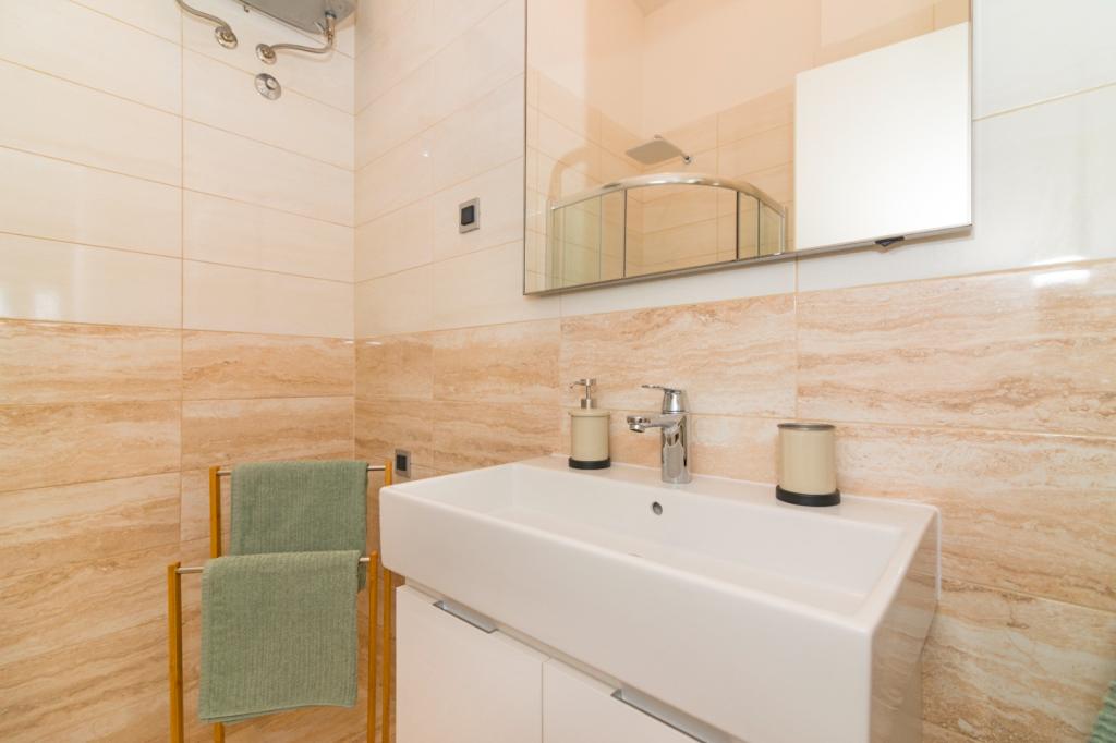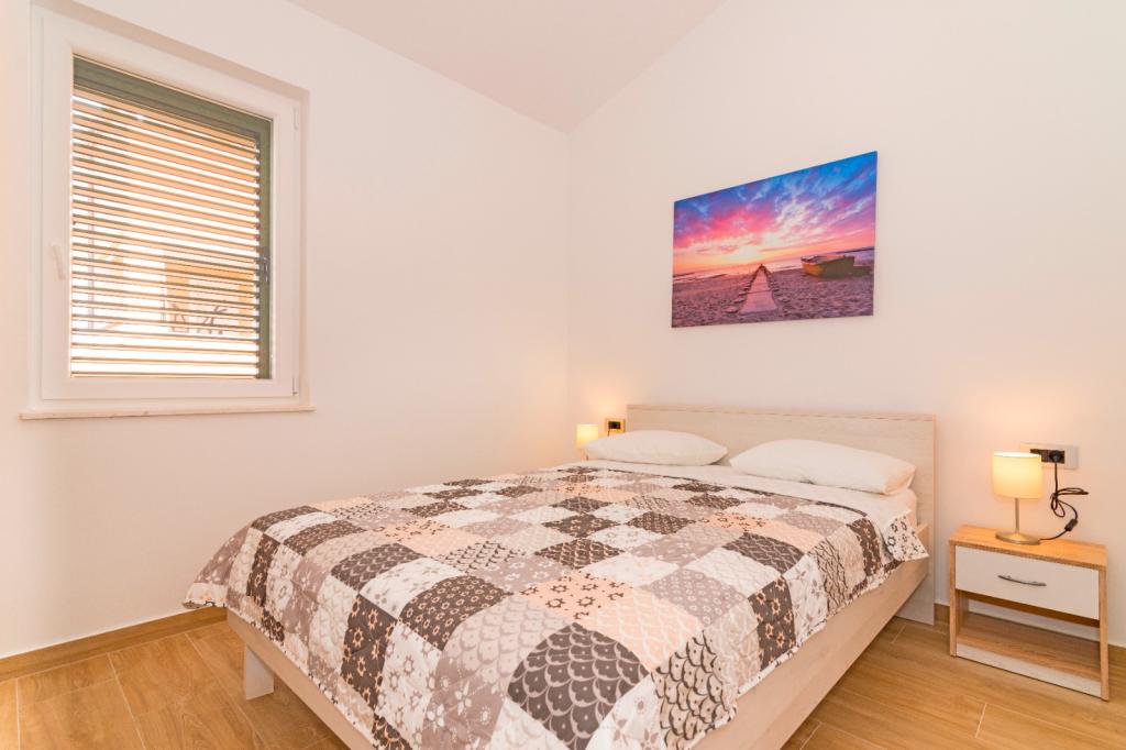 Nowoczesne apartamenty w cichym miejscu Srima znajdują się 200 m od morza. Idąc ulicą dojdziesz do centrum, gdzie znajduje się duża plaża żwirowa, promenada biegnąca wzdłuż morza, która prowadzi do Vodic, sklepy, kawiarnie, park, plac zabaw i inne obiekty. Dwa apartamenty tej samej wielkości składają się z dwóch sypialni, kuchni, łazienki, salonu i dużego tarasu na parterze oraz balkonu na piętrze. Każde mieszkanie posiada strzeżone miejsce parkingowe na ogrodzonym podwórku. Przestronna, schludna i nowa atmosfera domu zapewni poczucie komfortu. Połączenie z wyspami (łodzią taksówką), bliskość trzech parków narodowych i centrum kulturalnego Šibenika to dodatkowe atrakcje, które dopełnią doświadczenia tego pięknego, tętniącego życiem małego miejsca, które pozostanie w Twojej pamięci.