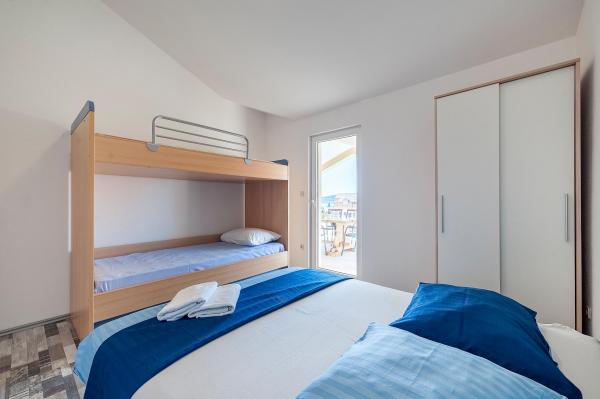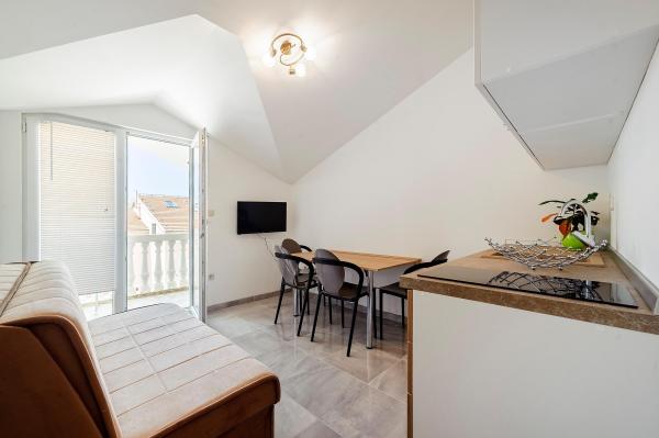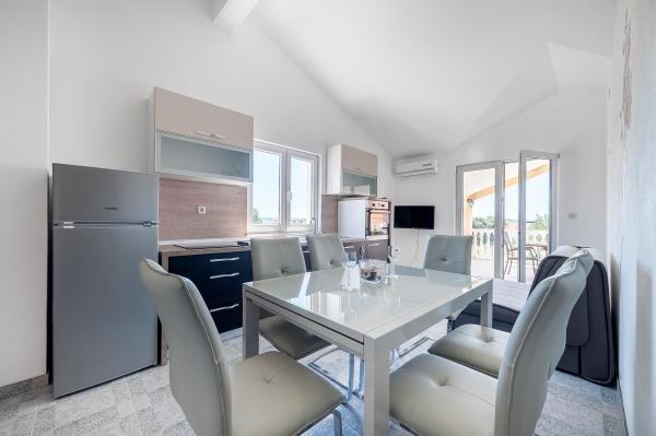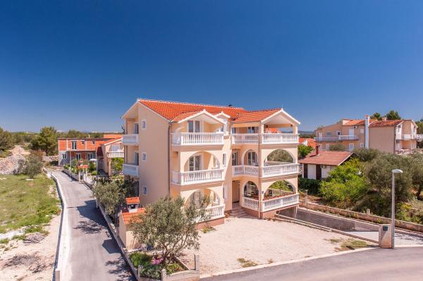 Apartamenty znajdują się w spokojnej miejscowości Srima, obok Vodice. Znajdują się one zaledwie kilka minut spacerem od pięknie urządzonych plaż i około pół godziny przyjemnego spaceru od turystycznego centrum Vodice. Apartamenty wyposażone są w klimatyzację, nowe nowoczesne meble, wysokiej jakości łazienkę i telewizor. Na podwórku domu znajduje się duży grill do bezpłatnego użytku.