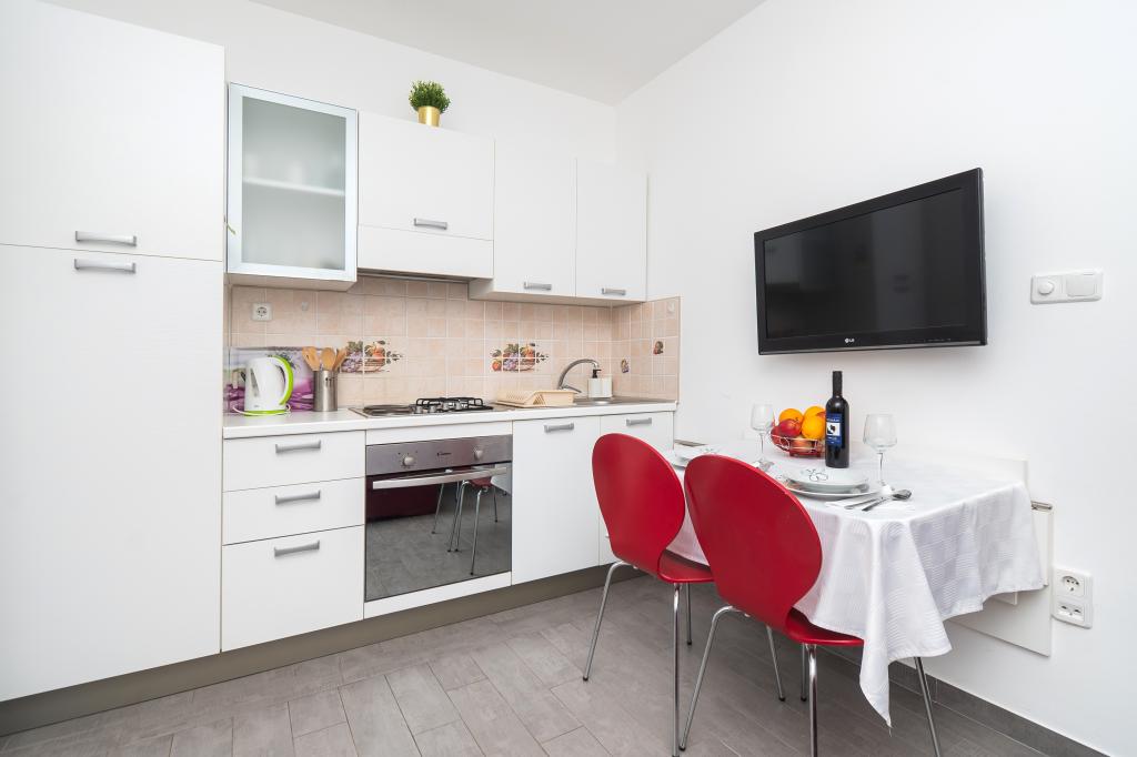 Dom położony jest w cichej spokojnej okolicy. Gospodarz bardzo serdeczny, pomocny. Mieszkanie jest bardzo czyste, zadbane i nowocześnie wyposażone – zgodne z opisem i zdjęciami. Wyposażenie zawiera wszystko, co jest potrzebne do przyjemnego pobytu, mieszkanie posiada duży piękny balkon z widokiem na morze i wyspę. Najbliższa plaża jest żwirowa, odpowiednia dla małych dzieci. Bardzo dziękujemy gospodarzom za ciepłe przyjęcie, pomoc (i pyszne warzywa z ogródka właścicieli).