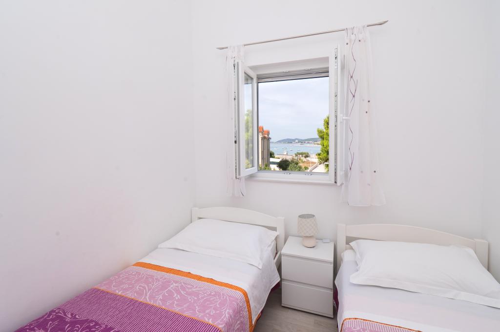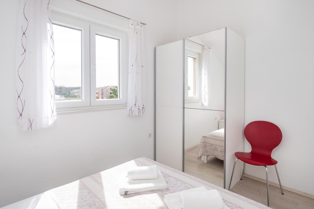 Znajdują się one w środkowej części Adriatyku, w pobliżu słynnego kurortu Vodice, w małej wiosce Srima, tuż przy piaszczystej plaży z widokiem na morze i wyspy. Obiekt jest nowy, z pięknie urządzonymi i nowocześnie urządzonymi apartamentami, szczególnie odpowiednimi dla rodzin z dziećmi, a także dla każdego, kto chce się zrelaksować. Dom położony jest w pobliżu plaży, w drugim rzędzie do morza, co gwarantuje wakacje z maksymalnym spokojem i jest wyjątkowym doświadczeniem wakacji na chorwackim Adriatyku. Apartamenty posiadają duże tarasy z widokiem na morze. Plaże są szczególnie odpowiednie dla dzieci, ponieważ dno długiej plaży jest płytkie i pokryte drobnym piaskiem. Każdy apartament wyposażony jest w klimatyzację i telewizję satelitarną. Parking znajduje się na dziedzińcu domu, gdzie wciąż jest prysznic na zewnątrz i grill.