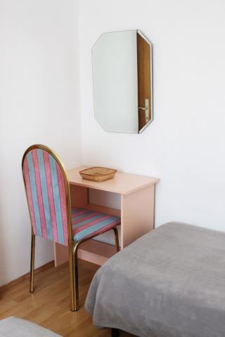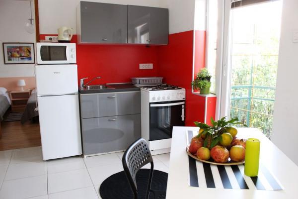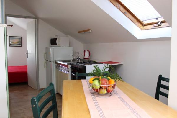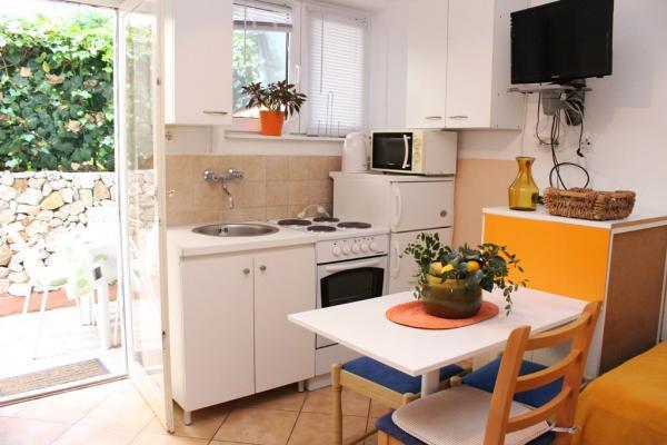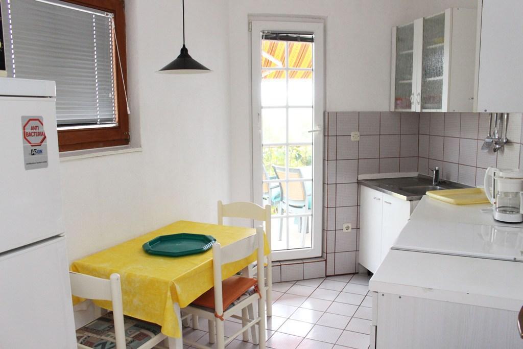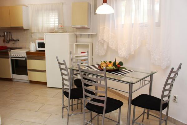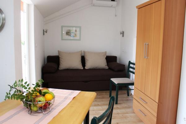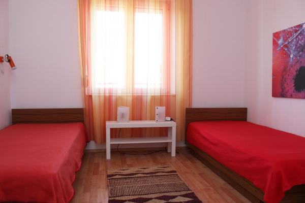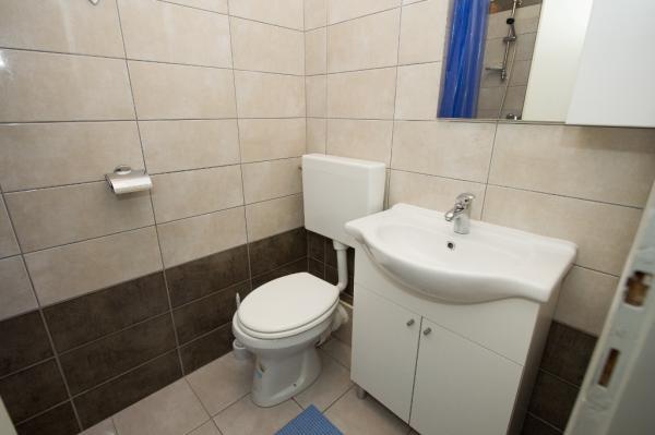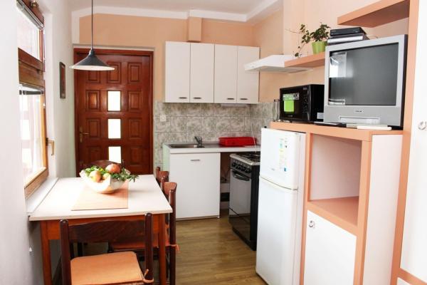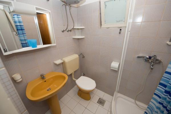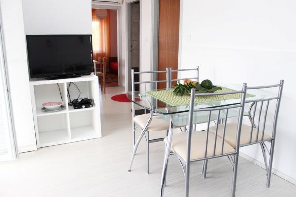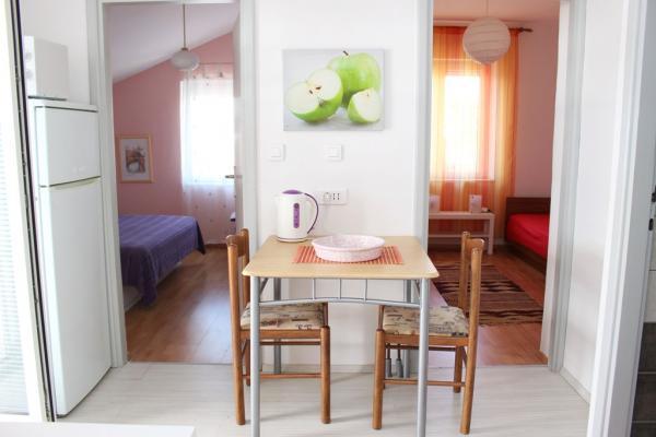 Apartamenty znajdują się w domu, który znajduje się w pierwszym rzędzie do plaży, około 10 m od plaży. Posiadamy apartamenty dwupokojowe, jednopokojowe oraz apartamenty typu studio dla 2-5 osób. Najwygodniejszy i największy apartament posiada 2 oddzielne sypialnie + salon z sofą, oddzielną kuchnię z jadalnią oraz przestronny taras z pięknym widokiem na morze, na który można wyjść z salonu lub z jadalni pokój. Posiada łazienkę z toaletą i drugą dodatkową toaletę. Przed domem znajduje się parking na ogrodzonym podwórku.Przed domem znajduje się plaża, która jest płytka i odpowiednia dla dzieci i dorosłych. Jest ogrodzony bojami dla kąpiących się i zacieniony rzędami tamaryszków. Jest zabetonowany do wygodnego siedzenia, leżenia lub opalania. W bezpośrednim sąsiedztwie domu znajduje się renomowana restauracja (20 m) aw pobliżu kilkanaście innych restauracji i kawiarni, cukiernie oraz sklepy ze sprzętem kąpielowym i plażowym.W pobliżu znajdują się również 2 sklepy spożywcze Konzum i Tommy , ok. 200 m. Centrum Srimy oddalone jest o ok. 200 m. Do centrum Vodice jest ok. 2 km, odpowiednie na spacery.