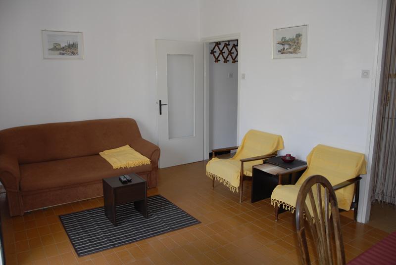 Dom znajduje się w Srima obok morza z piaszczystą plażą dla dzieci. Żwirowa plaża z Błękitną Flagą, co oznacza, czysta woda i wysoki standard organizacji plaży znajduje się 30 metrów od domu. Mamy dwa apartamenty, które znajdują się na parterze budynku, każdy z własnym wejściem na dziedzińcu, parking, grill, internet, TV satelitarną i tarasy z widokiem na morze. Pierwszy ma jedną sypialnię z dodatkowym łóżkiem, pokój dzienny z aneksem kuchennym, w którym znajduje się rozkładana sofa, łazienka i korytarz. Kolejny apartament składa się z dwóch sypialni, kuchni, łazienki i przedpokoju.