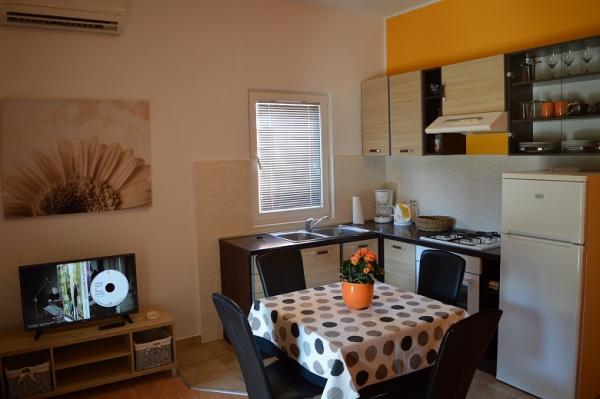 Apartamenty MALI DVORI znajdują się w malowniczej miejscowości turystycznej Srima. Srima to przyjemne i spokojne miejsce idealne na rodzinny wypoczynek. Dom oferuje 3 apartamenty. Nowoczesne i funkcjonalnie urządzone apartamenty oferują wszystko, co niezbędne do beztroskiego i przyjemnego pobytu. Każdy apartament posiada osobne wejście oraz zadaszony taras z widokiem na ogród i częściowo na morze. Piaszczysta plaża znajduje się zaledwie 80 metrów od domu i jest idealna dla małych dzieci. Jeśli szukasz dobrej zabawy i rozrywki, zaledwie 3 km dalej znajduje się Vodice, znany kurort turystyczny.