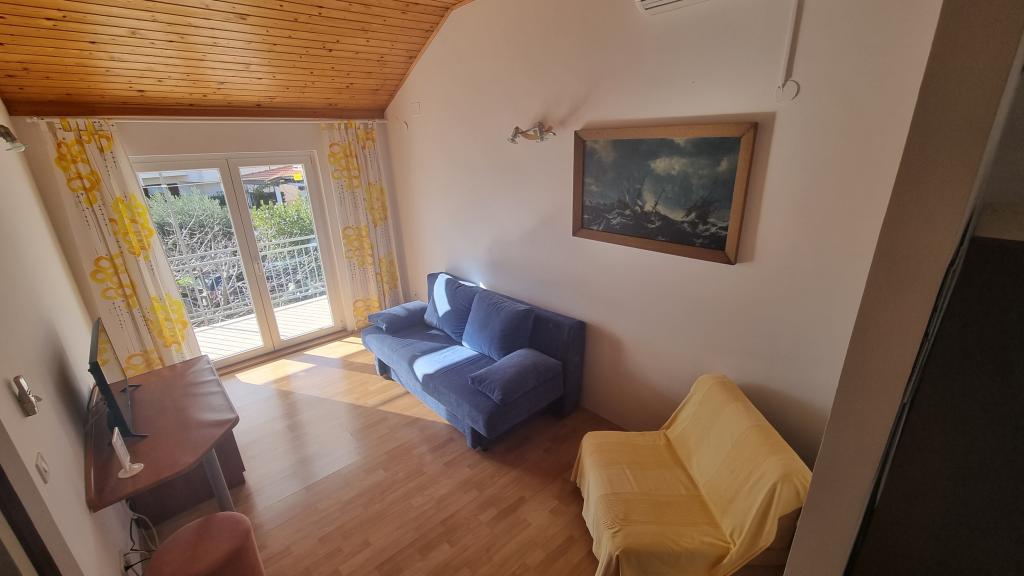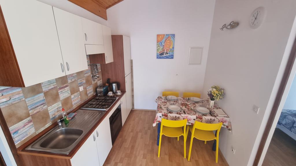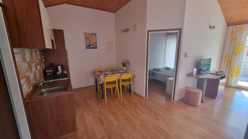 Bezpłatne terminy na sezon 2022: App 2+2 - po 27,8. Aplikacja 2+1 - 28,8. - 3,9. (8 dni) i po 15,9. Apartamenty znajdują się na przedmieściach Vodice - Srimi. Oferujemy 3 apartamenty. Na pierwszym piętrze naszego domu znajdują się apartamenty 2 2, a na parterze studio 2 1. Wszystkie apartamenty są klimatyzowane. Do każdego apartamentu przynależy zacieniony parking. W ogrodzie do Państwa dyspozycji ogródek z grillem i placem zabaw dla dzieci. Dom położony jest w bocznej uliczce, dzięki czemu zapewnia spokój i prywatność. Do plaży jest 200 m, do sklepu 150 m. Centrum miasta (Srime) oddalone jest o 500 m, a centrum Vodic jest oddalone o około 2 km lub 20 minut spacerem.