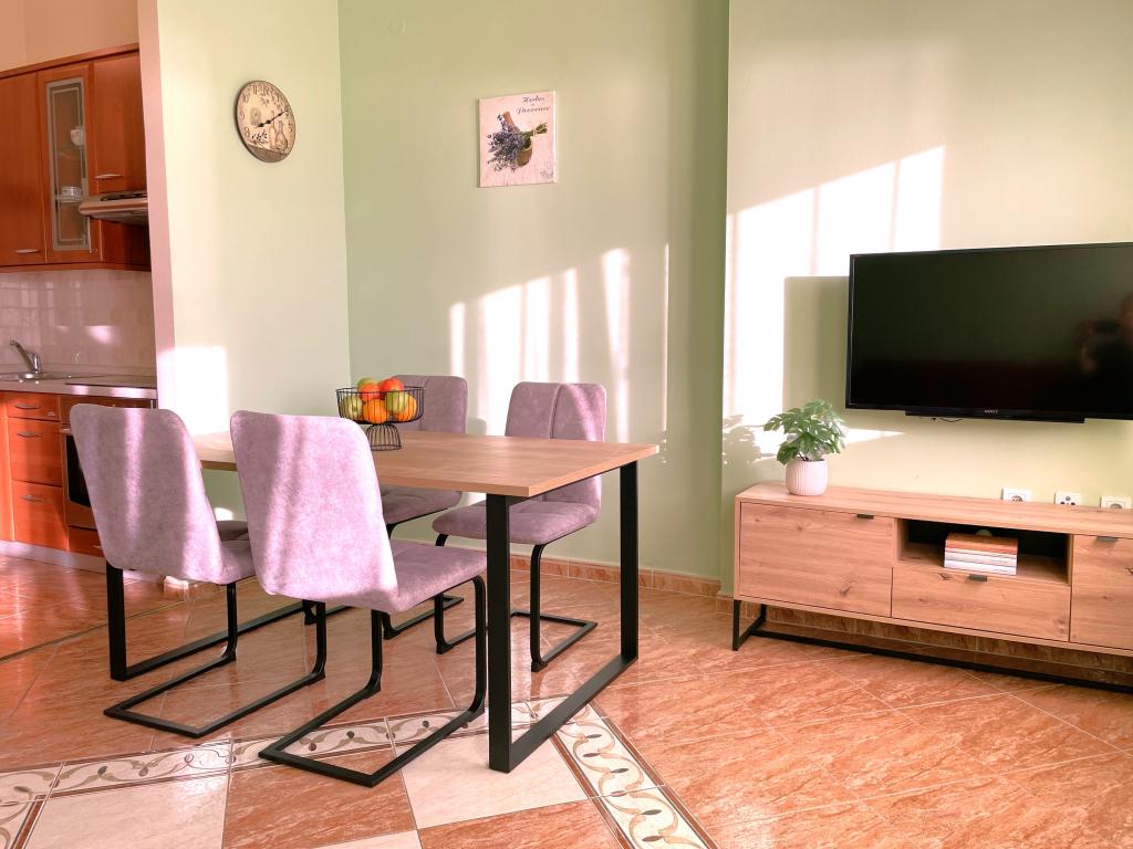 Opłata jest wliczone w cenę.Lokalizacja mieszkania jest świetna! 60 m do plaży. Niestety psy nie miały wstępu na plażę, więc każdego dnia jesteśmy zmuszeni wyjeżdżać gdzie indziej. Restauracje i piekarnie są w pobliżu, spacerkiem około 200 m Mieszkanie jest bardzo czyste, a właściciel i jego rodzina przyjęli nas bardzo przyjaźnie! Widok z balkonu jest piękny. Na parkingu znajduje się również punkt poboru wody, bardzo korzystne!