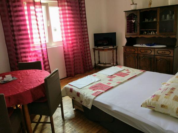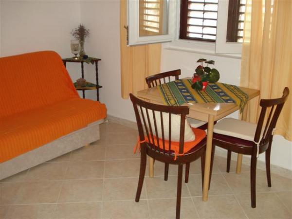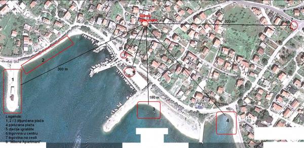 W rodzinnym domu, na pierwszym piętrze, znajdują się dwa apartamenty do wynajęcia. Każdy apartament posiada osobne wejście i własny taras. Dom położony jest w samym centrum Srimy, 60 m od sklepów i 80 m od morza. Plaża oznaczona Błękitną Flagą znajduje się 150 m od hotelu. Restauracja znajduje się 250 m od hotelu. Apartament 1, 2 +2. Składa się z: sypialni, pokoju dziennego z rozkładaną sofą, łazienki z wanną i pralką, kuchni ze zmywarką, tarasu. Posiada klimatyzację. Apartament 2, 2 +1. Składa się z: przestronnej sypialni, kuchni - salonu w jednym pomieszczeniu, toalety z prysznicem oraz dużego tarasu. Możliwość dwóch dostawek, pierwsze łóżko stanowi kanapę w salonie, a drugie dodatkowe łóżko można umieścić w sypialni. Posiada klimatyzację.