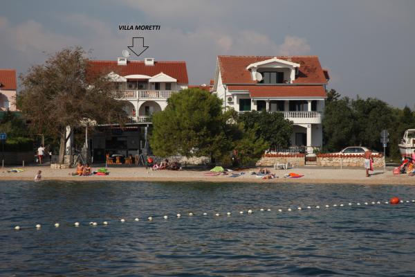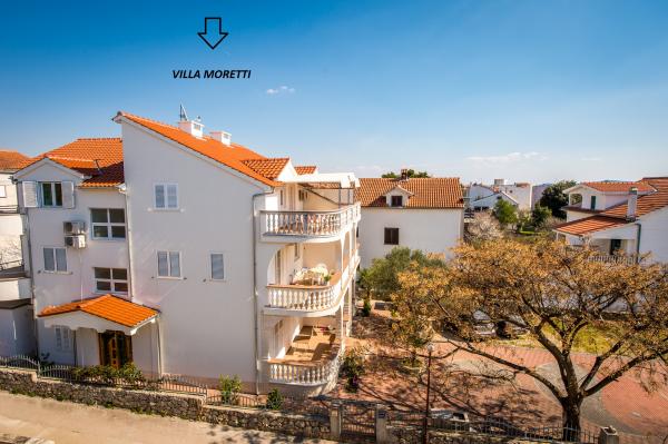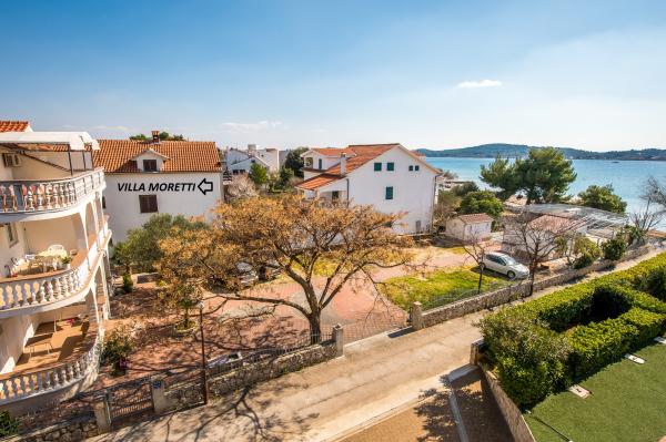 Villa Moretti znajduje się 100 m od dużego rynku, 2 km od centrum Vodice i dworca autobusowego, który oferuje połączenia międzymiastowe. Lotnisko w Zadarze oddalone jest od obiektu o 55 km. Za dodatkową opłatą można zorganizować usługi transportowe, a także wycieczki do pobliskich parków narodowych Krka i Kornati. Villa Moretti znajduje się 3 km od popularnego klubu dyskotekowego "HACIEENDA", który co roku odwiedza duża liczba młodych ludzi. Atutem Villa Moretti jest to, że znajduje się tuż przy plaży, co pozwala gościom na komfortowy dojazd bez kosztów samochodu i tłumów na plażę!
