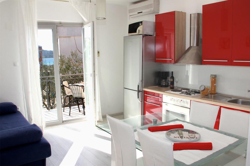 Nowo wyremontowany, klimatyzowany \Apartments Peter House\ znajduje się w małej miejscowości Srima koło Vodice, nad brzegiem morza, w pobliżu piaszczystych plaż, odpowiedni dla rodziny odmor. Svi apartamenty posiadają duże tarasy z widokiem na grill more. Korištenje w dvorištu. Apartmani mają swoją więź statek w cenie, a także parking dla samochodów na terenie stoczni