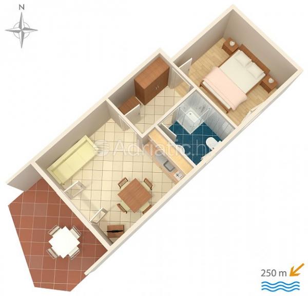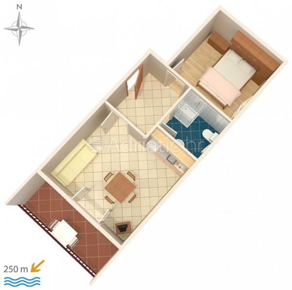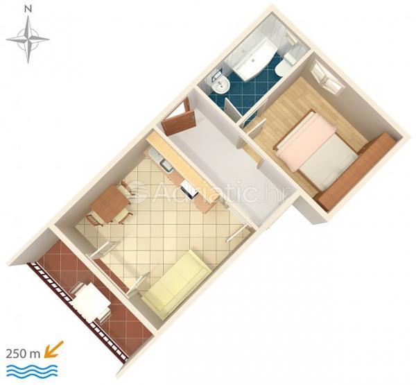 Jedyną zaletą obiektu jest odległość do plaży; około 200 metrów. Jeśli chodzi o mieszkanie, wyposażenie jest poniżej standardu, meble są zużyte, Dodatkowe łóżko dosłownie się rozpada, opiera się na zgniłej gąbce z trzema listwami.... Czystość jest przeciętna - przywitały nas pajęczyny, okruszki w szufladach, poplamione, podarte łóżko... Gospodarze nie przyjęli nas, bo byli zajęci, ale nawet nie zadzwonili, żeby zapytać, czy wszystko w porządku. Spodziewaliśmy się znacznie więcej, biorąc pod uwagę komunikację przed przyjazdem i ostatecznie przeżyliśmy rozczarowanie.