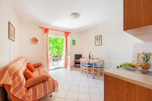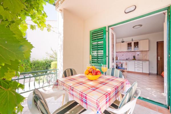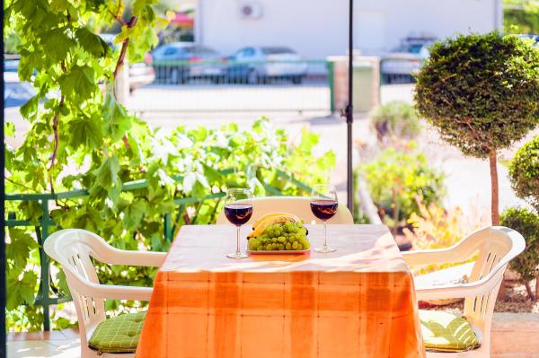 Apartament Loza znajduje się na parterze i posiada piękny taras w cieniu liści winogron, z widokiem na zadbane podwórko. Obok mieszkania znajduje się zadaszony parking. Mieszkanie było zadbane i czyste, a właściciel bardzo sympatyczny i komunikatywny. Piękne plaże znajdują się dwie minuty spacerem od apartamentu. W pobliżu znajdują się także sklepy, kawiarnie i restauracje. Prawie nie korzystaliśmy z samochodu, ale rowerami pojechaliśmy do miasteczka Vodice, które właściciel podarował nam za darmo. Rekomendacja dla wszystkich, którzy chcą spokojnego wypoczynku...