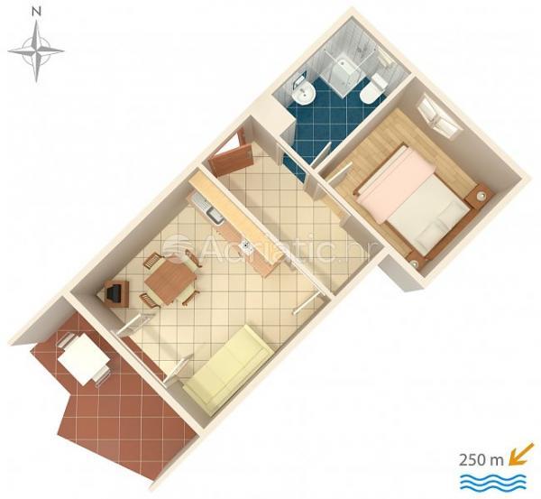 Mieszkanie znajduje się na pierwszym piętrze z widokiem na morze, urządzone w stylu i bardzo czyste. Wszystko jest bardzo nowoczesne i komfortowe w dotyku. Duża i przestronna łazienka, która jest dla mnie bardzo ważne. Gospodarze są przyjaźni, uprzejmi i zawsze bez względu na to, co trzeba. Wiem sporo o okolicznych miast i miejsc do odwiedzenia. W lodówce zostaliśmy przywitani przez butelkę zimnej wody i minerałów, i pozostawiając z prezentem-pamiątkę. Wielka pochwała dla ogrodnictwa stoczni pracy i miejsca do spotkań towarzyskich z grillem. Był to jeden z najpiękniejszych naszego pobytu w tego typu obiekcie, lub w mieszkaniu.
