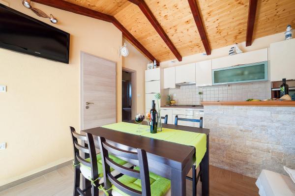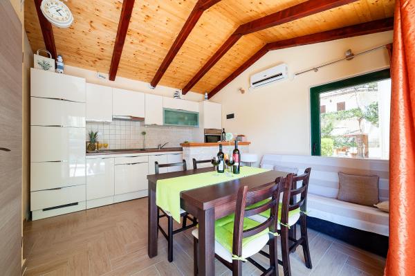Fantastyczny tydzień spędzony w małym domku z tarasem. Czysto , schludnie, super wyposażona kuchnia, grill, miejsce na tarasie do spożywania posiłków. Zdjęcia nie są wstanie oddać tego klimatu. Tu trzeba przyjechać. Okolica spokojna, do każdej plaży parę kroków, do rozrywkowej i atrakcyjnej części Vodic 5 minut spacerkiem. Właściciel przesympatyczny, jego córka prześliczna. Miejsce godne polecenia.