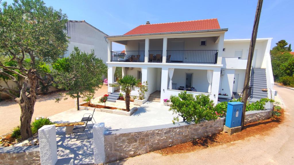 Apartamenty Štrkalj znajdują się w centrum Srimy, w pierwszym rzędzie od morza, tj. zaledwie kilka metrów do plaży. W ofercie znajdują się 3 apartamenty. Apartamenty mają osobne wejście, WI-FI, parking, klimatyzację... Dwa apartamenty znajdują się na parterze domu rodzinnego, a jeden na pierwszym piętrze, tuż obok mieszkania gospodarza. Wszystkie trzy apartamenty to 2 plus 2 z kombinacją dwóch osób dorosłych i dwójki dzieci lub trzech osób dorosłych. Apartamenty na parterze posiadają tarasy z widokiem na morze i pobliską wyspę Prvić, natomiast mieszkanie na pierwszym piętrze posiada dwa tarasy, z czego jeden ma widok na ogród, a drugi częściowy widok na morze i wspomniana wyspa. W pobliżu samego budynku znajduje się restauracja, sklep, kawiarnia, plac zabaw dla dzieci oraz duża plaża z udogodnieniami towarzyszącymi.