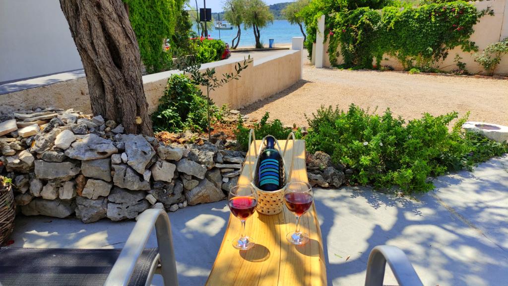 Opłata jest wliczone w cenę.Podwórko naszego domu rodzinnego obok parkingu to miejsce, w którym nasi goście mogą odpocząć przebywając poza apartamentem. Stawia to na pierwszy plan grill, obok którego znajduje się stół z zadaszoną altaną, z którego goście mogą korzystać samodzielnie lub w porozumieniu z gospodarzem. Mają także możliwość korzystania z naszego ogrodu i zbierania dojrzałych owoców. Jeśli chodzi o inne treści (również po uzgodnieniu z gospodarzem), podkreślamy możliwość rodzinnego rejsu statkiem na pobliskie wyspy ze zwiedzaniem, spacerami i pływaniem zgodnie z życzeniami gości i możliwościami gospodarza...