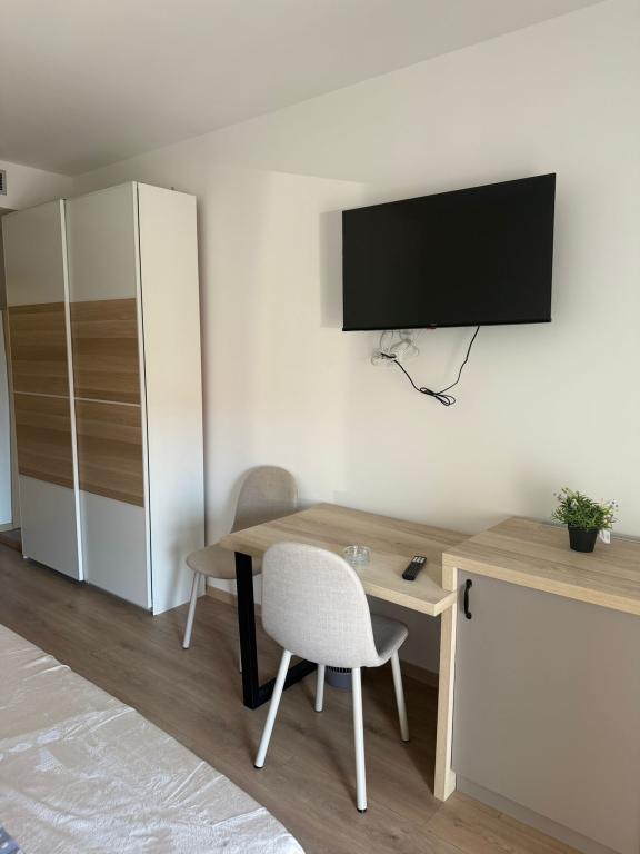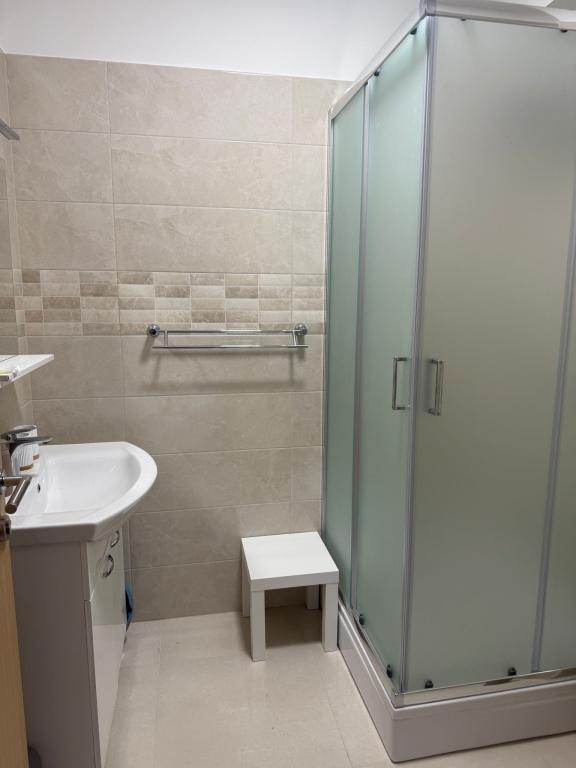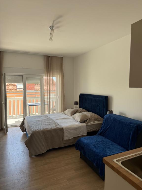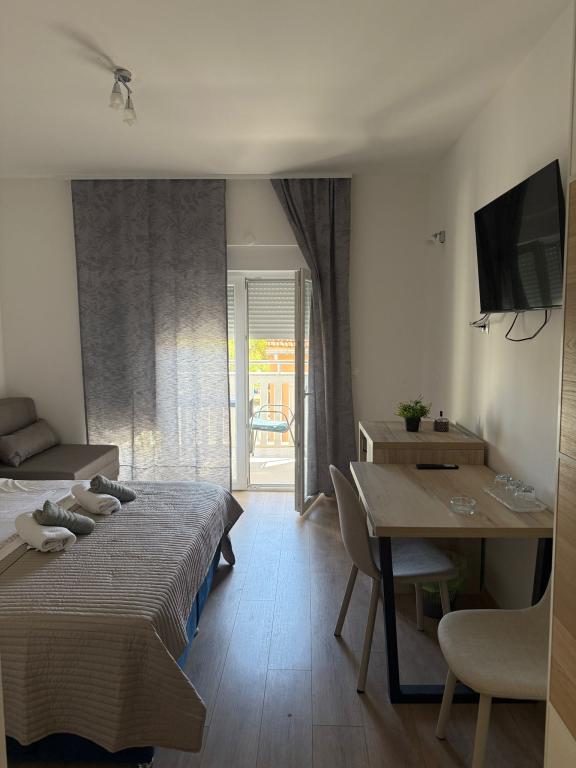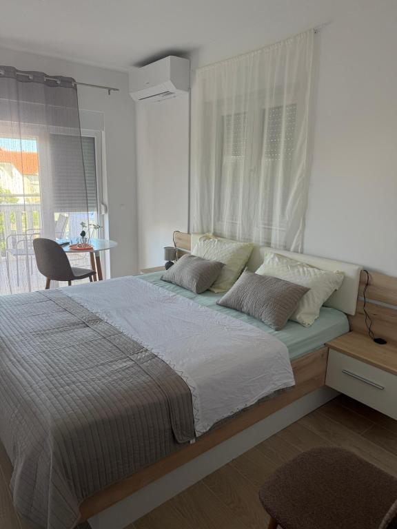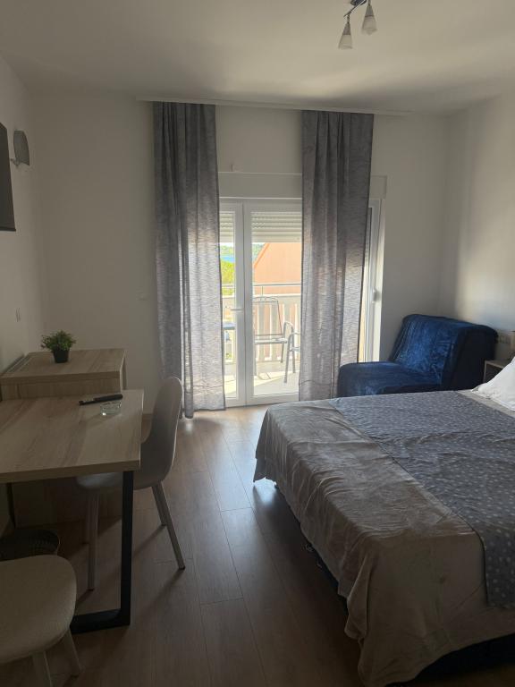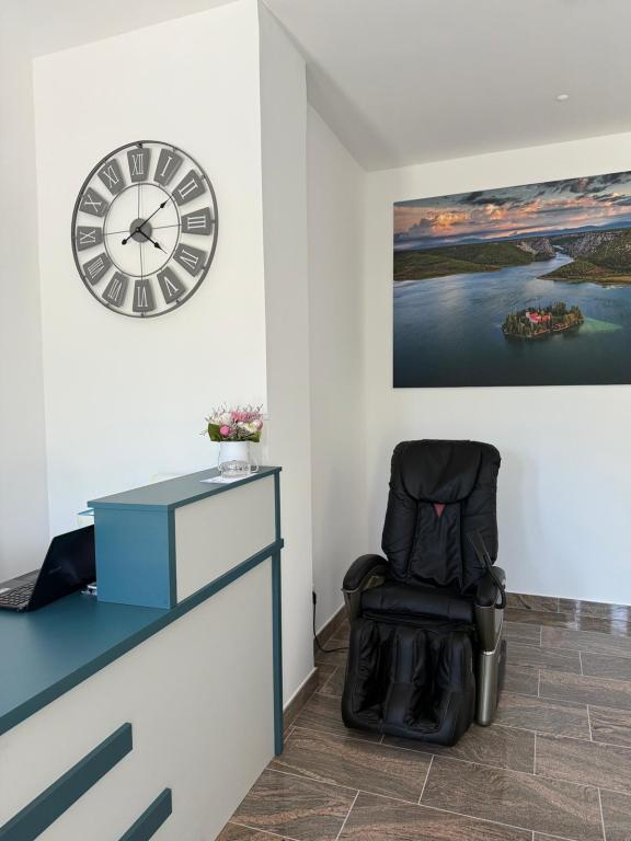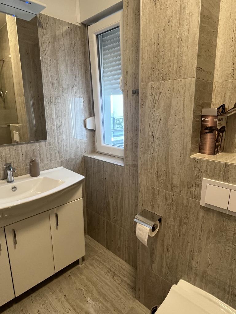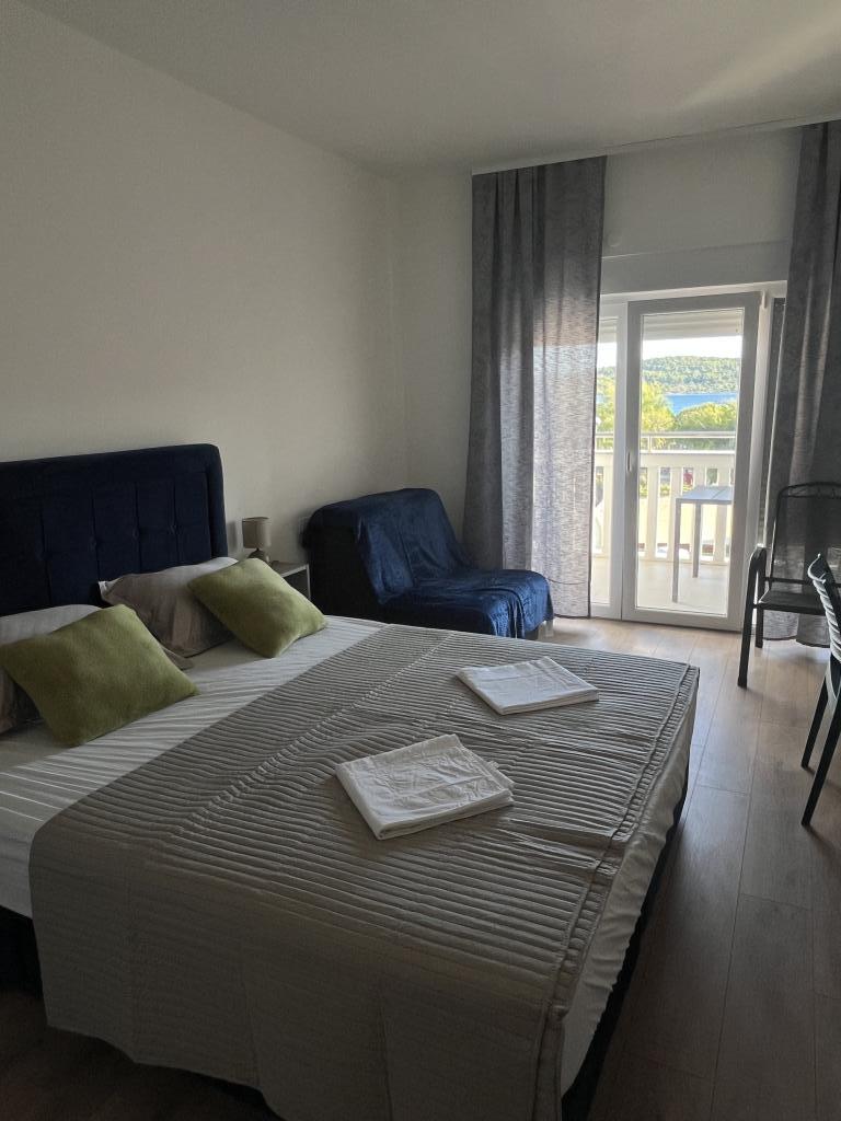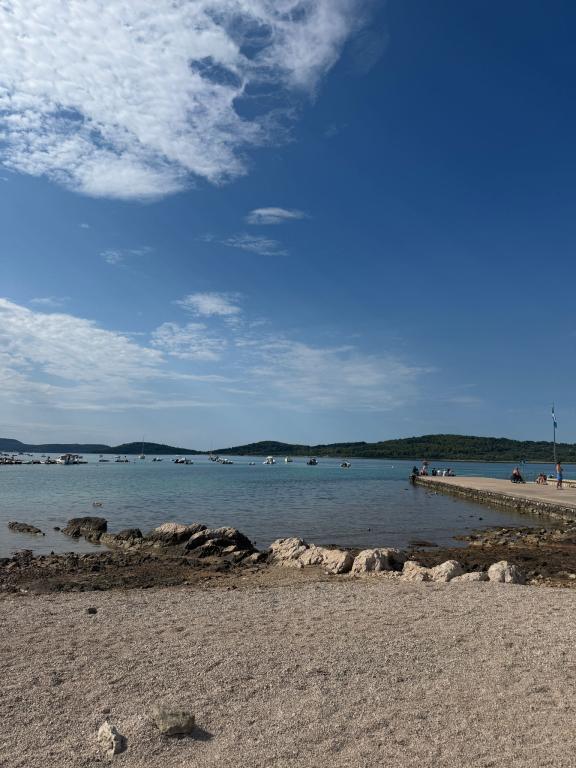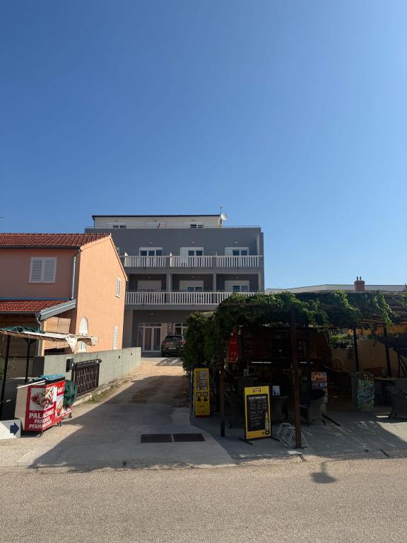 Nowo wyremontowany obiekt położony w pierwszym rzędzie od morza, w miejscowości Srima, gdzie znajduje się piaszczysta i kamienista plaża. W pobliżu obiektu znajduje się piekarnia, sklep i restauracja. 200 m spacerem, 1 km promenadą do Vodic. Dostępne są pokoje dwuosobowe z dostawką, idealne dla podróżujących samotnie, par i osób podróżujących służbowo. Oferta obejmuje apartament typu studio z aneksem kuchennym oraz apartamenty z oddzielną sypialnią. Apartamenty znajdują się na 1. i 3. piętrze budynku. W obiekcie znajduje się winda. Każdy pokój stanowi oddzielną jednostkę mieszkalną.