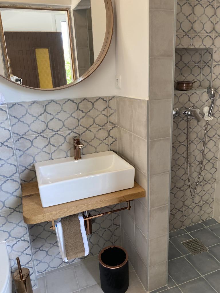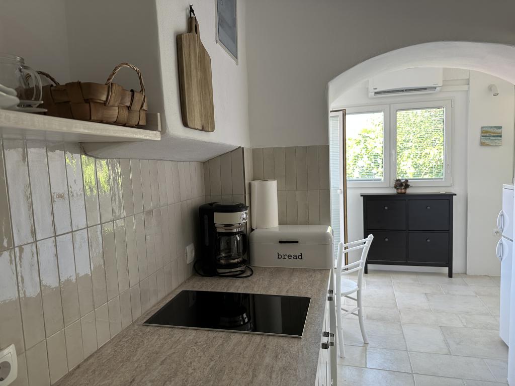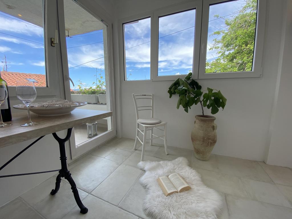 Dom położony jest 50 metrów od piaszczystej i żwirowej plaży. Na plaży nie ma tłumów, a morze jest krystalicznie czyste. W domu są dwa apartamenty. Mieszkanie jest świeżo po remoncie iw pełni wyposażone. Apartament posiada dwie sypialnie z podwójnym łóżkiem, w pełni wyposażoną kuchnię, łazienkę oraz balkon z widokiem na morze. Jedno miejsce parkingowe znajduje się 100 m od domu.