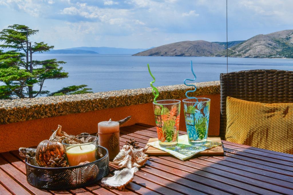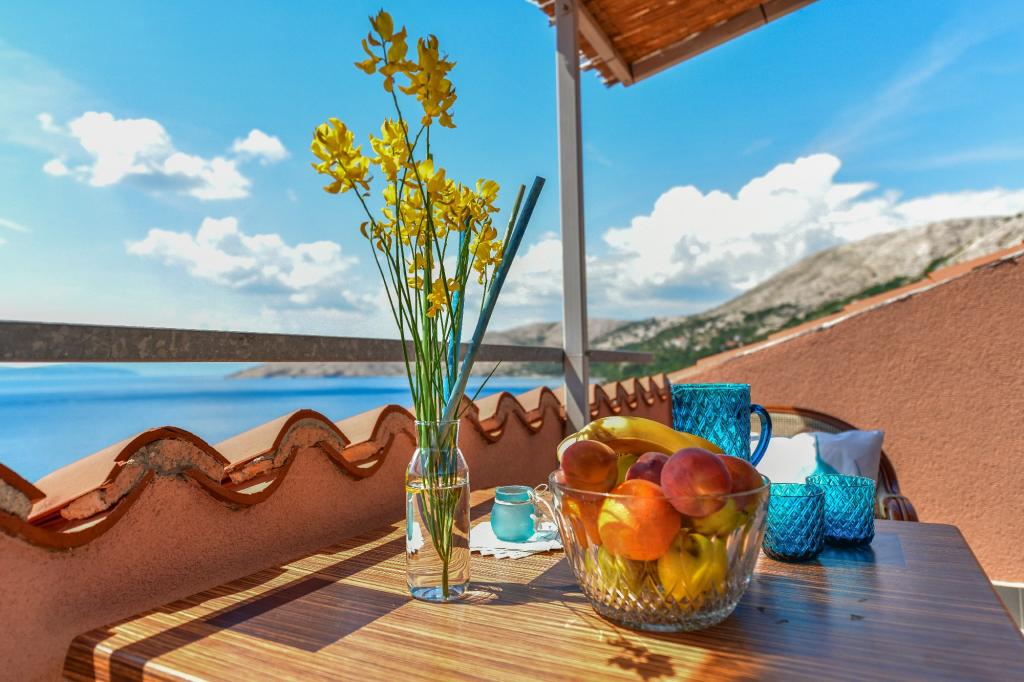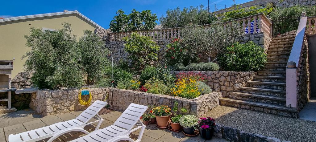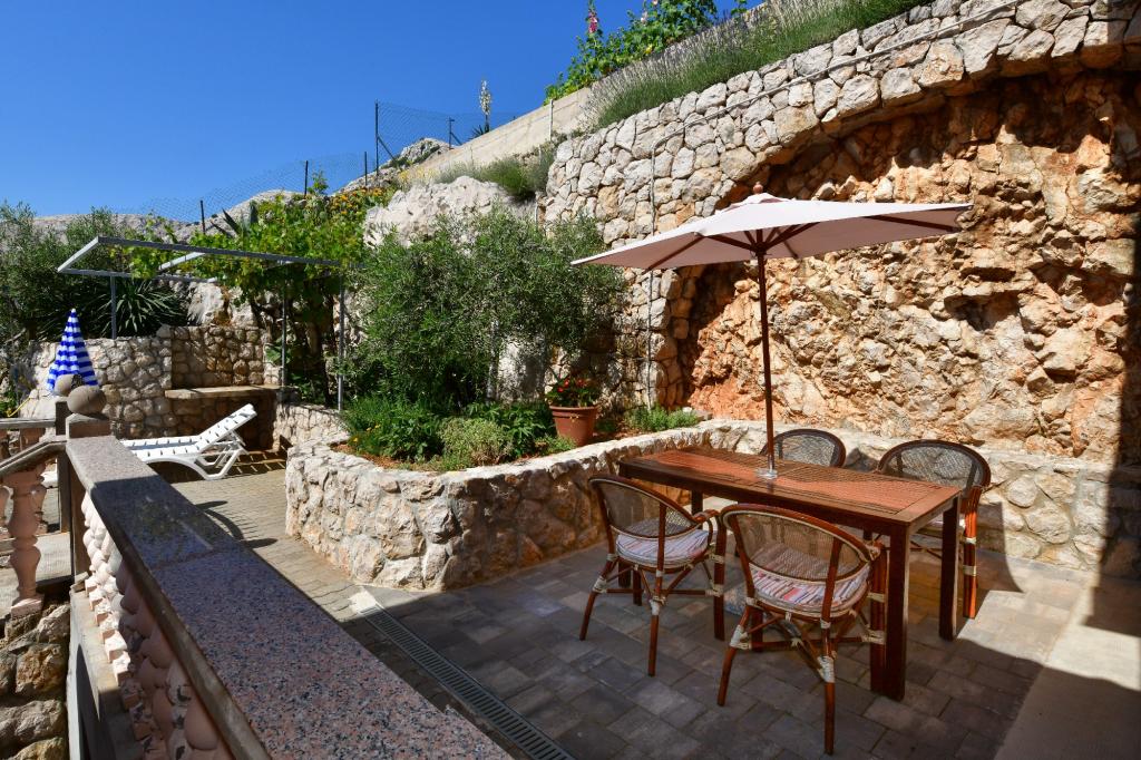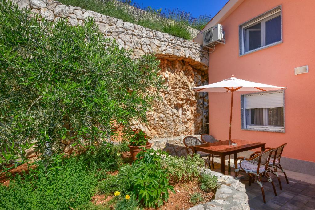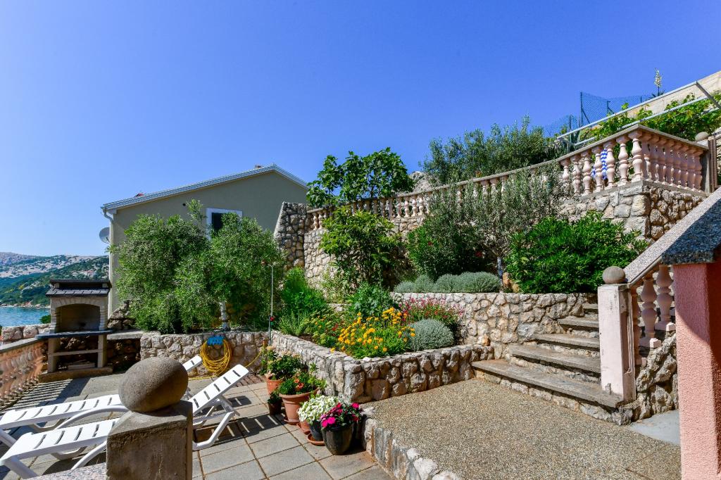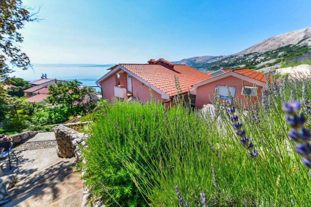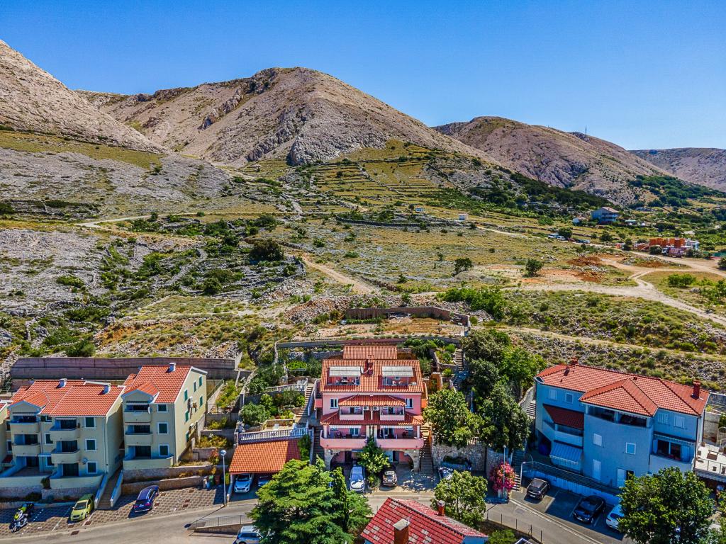 Stara Baška to małe spokojne miejsce na skrajnej południowej części wyspy Krk. Obiekt znajduje się na końcu terenu - na końcu drogi asfaltowej. Ogród jest ładnie urządzony z tarasami z grillem, prysznicami i małymi terenami zielonymi - ogrodami. Odległość do piaszczysto - żwirowej plaży wynosi 100 metrów. Przystań w małym porcie znajduje się 100 metrów od obiektu. Centrum oddalone jest o 10 minut spacerem. W pobliżu znajdują się 4 restauracje. Odległość do pierwszej restauracji jest 50 metrów. Obiekt jest nowy, a apartamenty są nowocześnie wyposażone. Dziedziniec ma 8 miejsc parkingowych. (3 miejsca parkingowe pod dachem, inne nie są objęte ubezpieczeniem)
