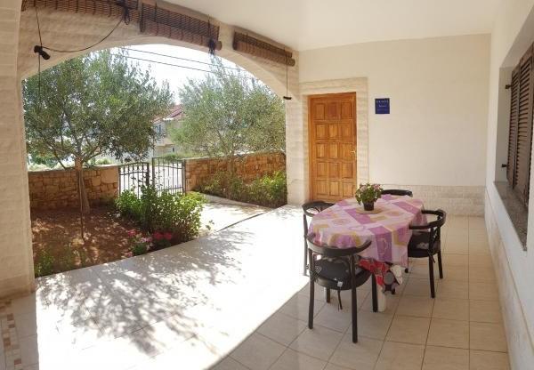 W miejscowości Stara Novalja, na parterze domu rodzinnego, znajduje się uroczy i praktyczny apartament wakacyjny, podczas gdy gospodarz mieszka na podłodze. Przed wejściem znajduje się obszerny zadaszony taras, na którym można napić się porannej kawy i wieczorem w kameralnym spotkaniu z bliskimi z orzeźwiającym drinkiem. Stara Novalja ma piękne plaże, które są szczególnie odpowiednie dla dzieci. Przed domem znajduje się droga, więc w zasięgu ręki są restauracje i sklepy, a wzdłuż wybrzeża ciągnie się piękna i piękna promenada. Poznaj tę piękną wyspę i odwiedź Rycerze Raf, gdzie znajdziesz galerię znanych koronkowych laurów, muzeów solnych i solnych, znanych i atrakcyjnych miejscowości Novalja.