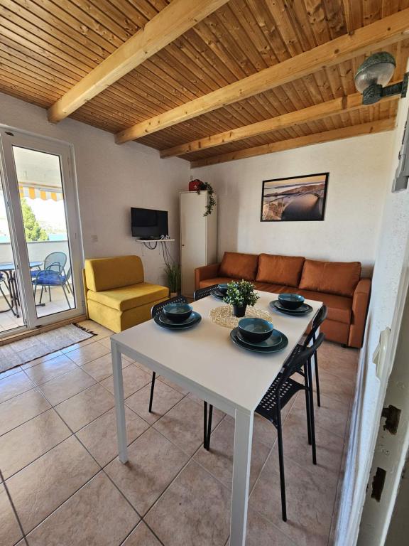 Apartamenty znajdują się w pięknej zatoce Stara Novalja na wyspie Pag. Wszystkie apartamenty mają taras z widokiem na morze, telewizję satelitarną i internet Wi-Fi. Apartamenty 2+2 są wyposażone w klimatyzację, a apartament 6+2 ma wentylatory sufitowe. Rodziny i małe zwierzęta są mile widziane. Cena obejmuje wszystkie podatki, korzystanie z klimatyzacji, telewizji satelitarnej, parking i pościel.