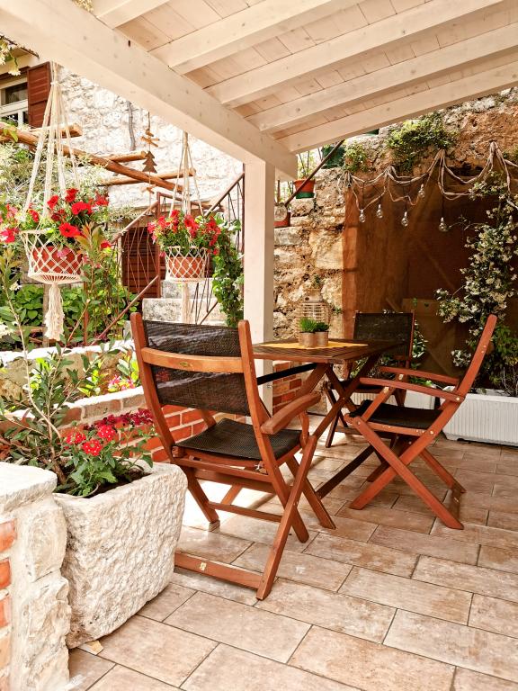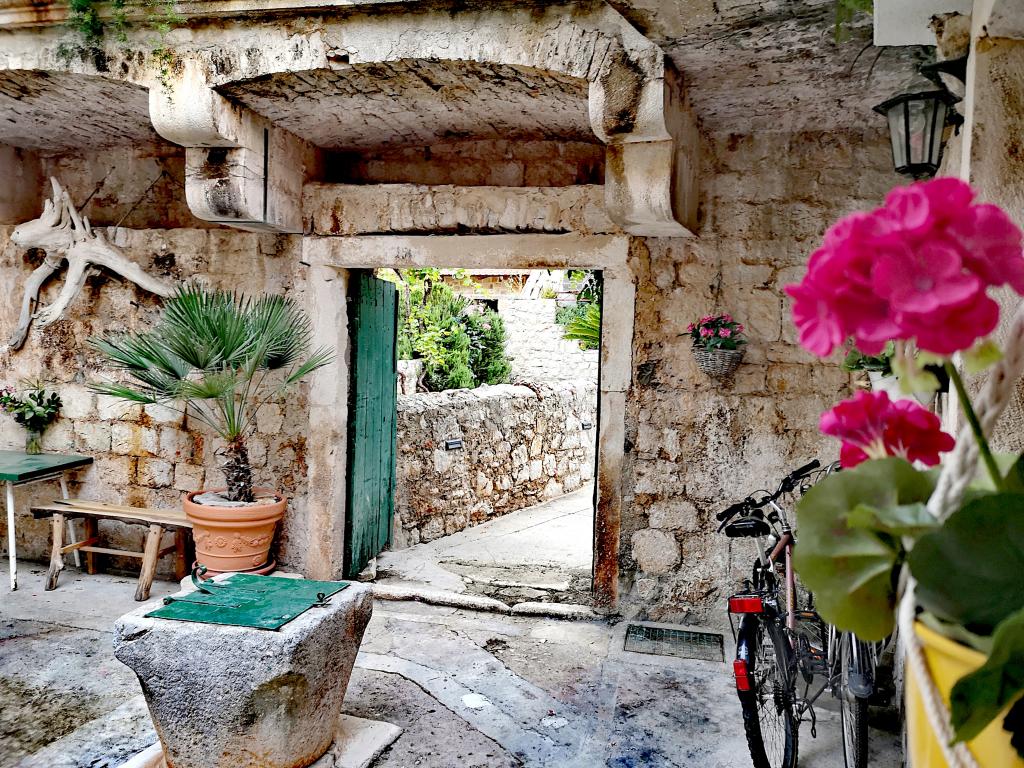Apartamenty Anitque i Hanibal, Częścią rezydencji jest Hanibal Lucić, słynny szlachcic i poeta, który żył od 1485 do. 1553 g. Z tego okresu pochodzi również obiekt, w którym znajduje się mieszkanie. Centralną częścią dworu jest piękny kamienny dziedziniec otoczony kwiatami. Ze względu na swoje wyjątkowe znaczenie sąd jest chroniony przez Ministerstwo Kultury. Goście naszych apartamentów (łącznie 5 łóżek) mają zaszczyt być częścią tej wyjątkowej przestrzeni. Apartament Antique jest dla dwóch osób i mieszkania Hanibal dla 2 osób, ale może pomieścić do 3 osób. Oba apartamenty zapewniają pełen komfort. Udekorowane naszą grafiką wykonaną z naturalnych materiałów, wyposażoną w mnóstwo miłości i uwagi, a wszystko to z myślą o tym, aby nasi goście czuli się komfortowo! Klimatyzacja, internet, telewizja satelitarna ... zapewniają przyjemny pobyt wśród starych kamiennych murów. Goście mają do dyspozycji dwa rowery na apartament, z których wszystkie są dostępne tutaj.