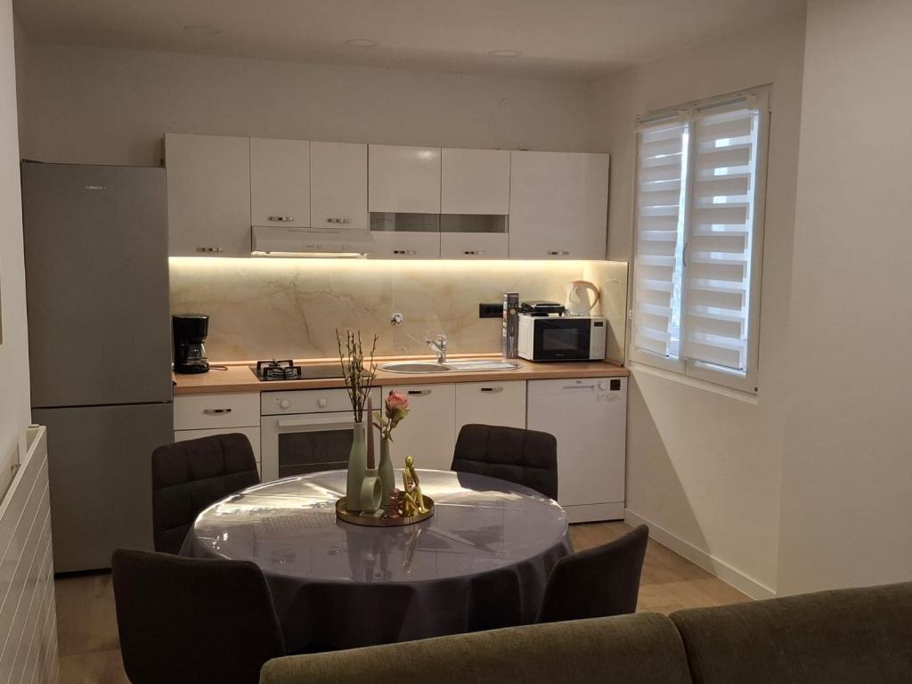 Całkowicie nowe umeblowane mieszkanie na parterze domu rodzinnego. Obiekt położony jest w spokojnej okolicy, niedaleko wejścia do Parku Narodowego Paklenica.