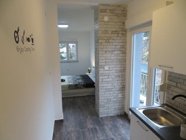 Nowe mieszkania, w pełni wyposażone i nowoczesne w rejonie plaży (30 metrów do morza), zaledwie 200 metrów od centrum miasta. Dom z apartamentów jest cały odnowiony w 2018 roku. Kawalerka jest czarno - biały z balkonem. Apartament 2 1 z balkonem i widokiem na morze w pięknych białych i brązowych odcieniach. Mieszkanie 4 1 jest największą, ma dwa pokoje z dużymi łóżkami. Jeden pokój jest biały - złoty kolor, a drugi biały i beżowy dopracowany. Cały apartament z kuchnią i jadalnią posiada odkryty taras z meblami ogrodowymi. W pobliżu znajduje się wiele restauracji i sklepów. Starigrad Paklenica to idealne połączenie morza i wspinaczki z powodu narodowego Paklenica Park, który znajduje się bardzo blisko (1700 metrów). Miasto Zadar jest również blisko do każdej wizyty, zwiedzanie, lotu, łapanie lokalnego ruchu autobusów, korzystających z lokalnych przysmaków i tym podobne.