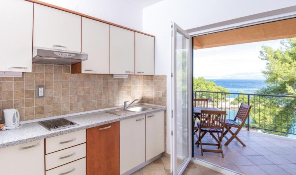 Apartamenty Ksenija znajdują się w miejscowości Stomorska na wyspie Šolta. Lokalizacja jest zaledwie 20 metrów od pięknej kamienistej plaży. Każdy apartament posiada strzeżony parking w cieniu, przestronny taras z widokiem na morze, klimatyzację i nowoczesną kuchnię. Odległość z apartamentu do kilku restauracji w centrum Stomorskiej i sklepów to ok. 200-400 metrów. Odległość od portu promowego wynosi 11 km.