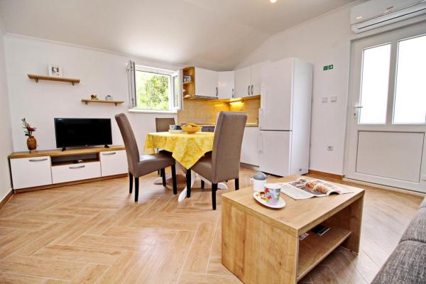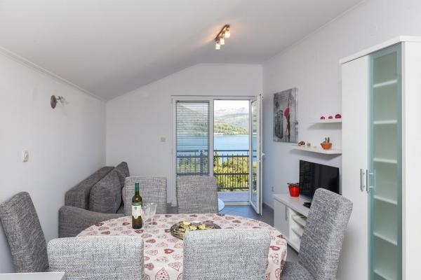 Apartamenty znajdują się w rodzinnym domu we wsi nad morzem małą wioskę, która jest częścią wsi Hodilje na wybrzeżu Zatoki Malostońskiej. To miejsce jest daleko od historycznego miasta Ston 3 km i wszystkie odległości krótkiego spaceru od morza. Apartamenty składają się z sypialni, łazienki i kuchni. Apartament 1 ma również salon z sofą z możliwością siły. Wszystkie pokoje wyposażone są w podwójne łóżko, natomiast w mieszkaniu 2 jest jedno dodatkowe łóżko dla jednej osoby. Balkon 01:02 piękny widok na zatokę Mali Ston, ostrygi i małże.