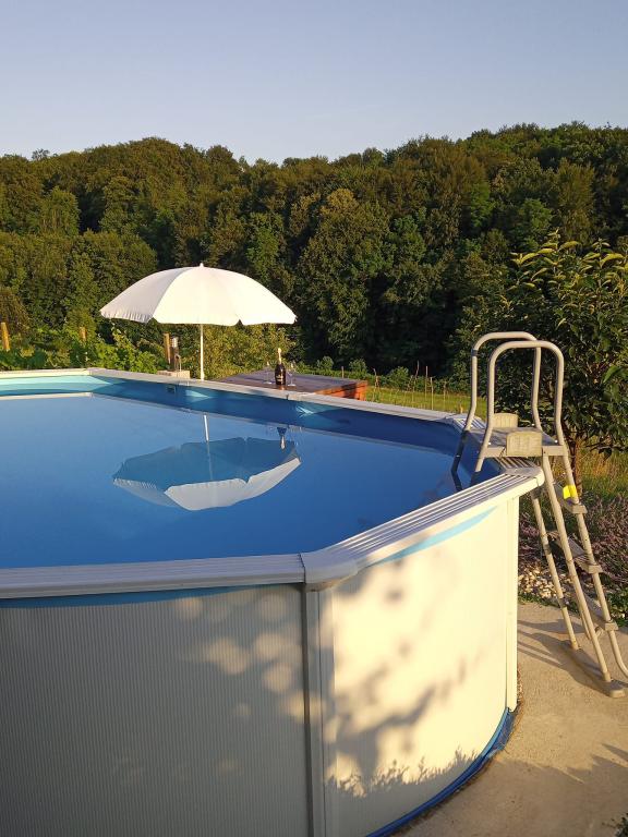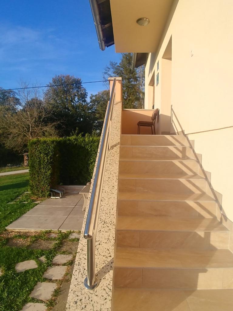 W oazie ciszy i spokoju oraz 100% zieleni, pachnącej roślinami, w Grabrowniku 139 Apartament Arena znajduje się na pierwszym piętrze domu rodzinnego z 2 sypialniami x 2, salonem. pokój i łazienka. Do jego dyspozycji jest zewnętrzny taras południowy o powierzchni 60 m2. z meblami do siedzenia, opalania, grillowania, a także prefabrykowany basen 610x360x120 cm. Kąpiąc się, pływając lub opalając się w basenie, obok basenu masz stolik z parasolem. Widok w stronę łąki i lasu złapie jelonki, kłosy traw w wielu odcieniach zieleni. W ogródku jest też ognisko, zbierzcie się i rozpalcie ognisko i upieczcie kiełbaski lub jakieś swoje przysmaki na patyku. Do aktywności na świeżym powietrzu zaprojektowaliśmy dla Ciebie letnią kuchnię ze zlewozmywakiem i ciepłą wodą, pralką i sprzętem, który posłużą do wypoczynku na świeżym powietrzu lub przygotowywania posiłków. W pobliżu znajdują się uzdrowiska St. Martin, farma Jelena, punkt widokowy Mađerka, szkocka hodowla bydła, plenerowe centrum sportowo-rekreacyjne, 25. winiarnia z najlepszymi winami, Zmajev vrt oraz oferta warzyw w krajowym PO