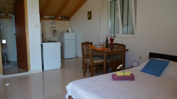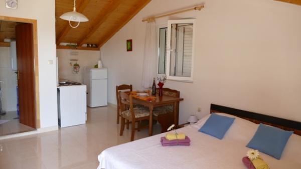 Idealne miejsce na wakacje z dziećmi, osób starszych, a nawet młodych par. Byliśmy w kawalerce, piękny taras z widokiem na morze, prywatnym (schody) z parkingu. Właściciel pani z mężem są bardzo przyjaźni, kiedy potrzebowaliśmy czegoś, natychmiast rozwiązany. Pani Rolanda piekła pyszne ciasta, dał nam smak domowych suszonych i świeżych fig, choć może tylko chorwacki, ale wiele słów są takie same, jak w języku angielskim, więc nie było problemu z wyrzutem. Miał piękny ogród, bardzo nam się podobało tam. Apartamenty znajdują się w cichej okolicy, dom jest w zasadzie sam, ale to trochę plaży, mniej niż 100m, oficjalna plaża - który jest nieco dalej, około 200-300. W centrum jest również w odległości krótkiego spaceru, około 5-10 min spacerem od placu, wzdłuż portu jest kilka restauracji i trzy sklepy, na przykład. Bean można kupić praktycznie zawsze świeże. Byliśmy bardzo zadowoleni!