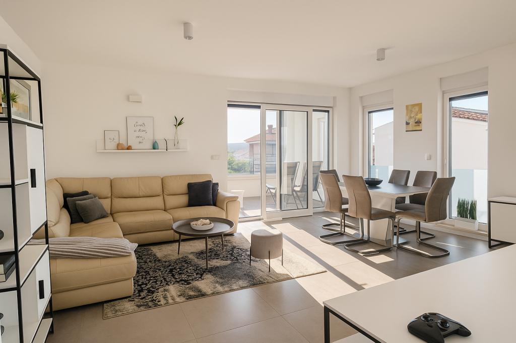 Mieszkanie to jest idealnym miejscem na wypoczynek. Poznaj zabytki i lokalne atrakcje Sukošana – jest tu tak wiele do zobaczenia i zrobienia! Jako apartament z własnym wyżywieniem znajdziesz wszystko, czego potrzebujesz do udanego pobytu. W kuchni znajduje się lodówka, płyta grzewcza, piekarnik, czajnik i zamrażarka. Mieszkanie jest idealnym miejscem do wypoczynku i posiada telewizor oraz dostęp do Internetu. Ten apartament ma 2 sypialnie i może wygodnie spać 6 osób. W pierwszej sypialni znajdziesz łóżko typu king-size. W drugiej sypialni znajdują się 2 łóżka pojedyncze. W salonie znajduje się kanapa do spania. Jest jedna łazienka. W łazience znajduje się także pralka. Pościel i ręczniki są wliczone w cenę, aby uczynić Twój pobyt przyjemniejszym.