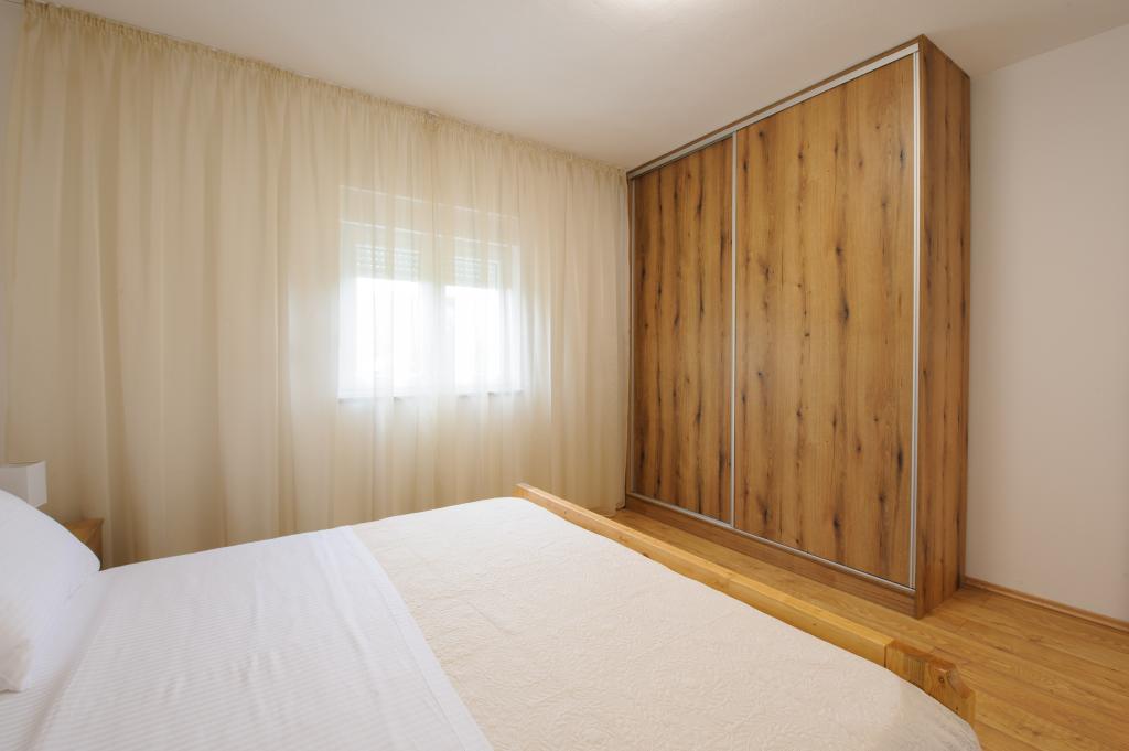 ZUPEŁNIE NOWE APARTAMENTY IVA SĄ IDEALNE NA WAKACJE Apartamenty Ive znajdują się w Sukošan, zaledwie 300 metrów od plaży Mala Makarska i tylko 10 kilometrów od pięknego Zadaru. Mieszkanie na parterze posiada 2 sypialnie, duży salon i kuchnię, a także duży balkon. Mieszkanie to tak naprawdę całe piętro domu. Mieszkanie na piętrze ma jedną sypialnię, pokój dzienny, kuchnię, łazienkę i taras. Mieszkanie wyposażone jest w funkcjonalną kuchnię (lodówka, kuchenka, zmywarka, tylko parter, naczynia...), telewizor, klimatyzację, pralkę, duże podwójne łóżka. Na życzenie możemy dostawić łóżeczko dziecięce. Na podwórzu o powierzchni 900 m2 znajdują się 3 miejsca parkingowe i jedno miejsce w garażu, grill zewnętrzny, zieleń dla dzieci... W promieniu 300 metrów znajdują się sklepy, restauracje, bary na plaży, place zabaw dla dzieci, fast food...
