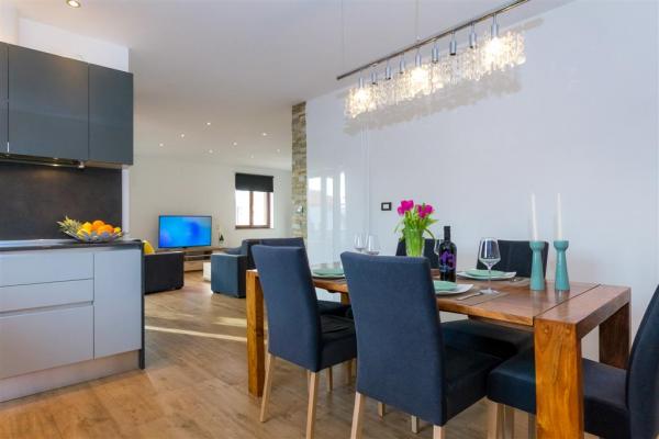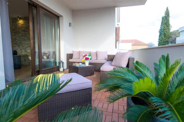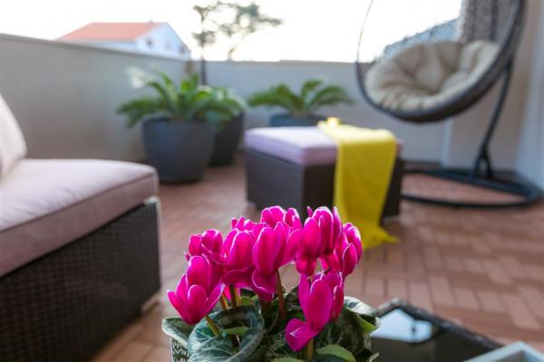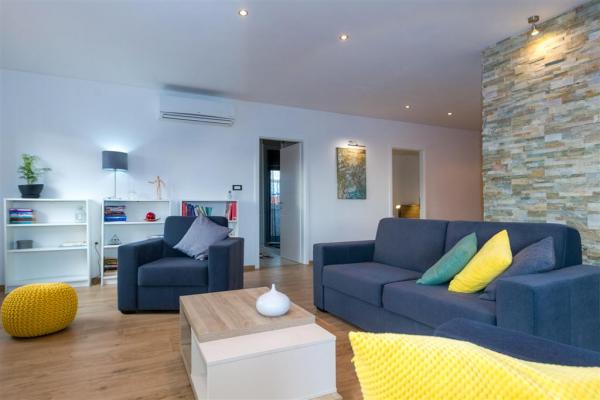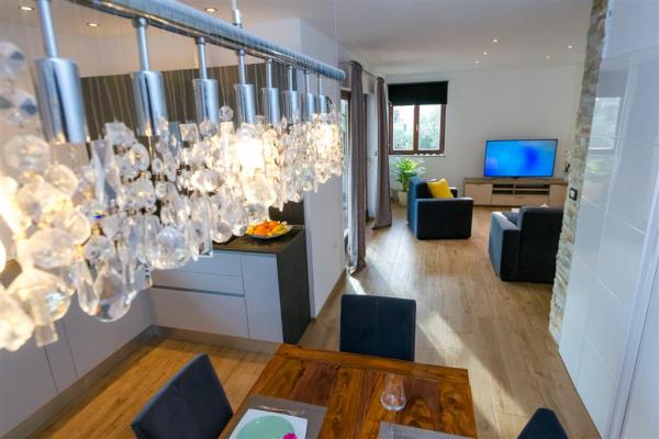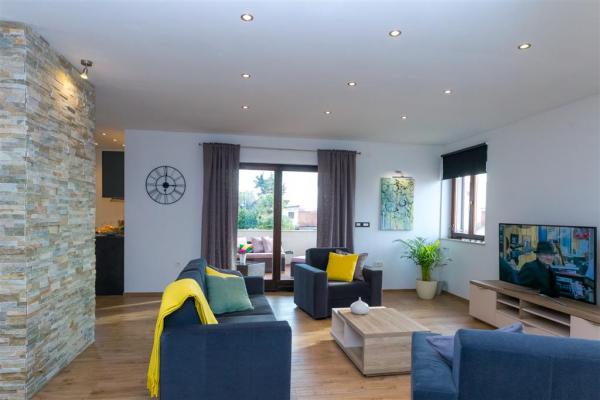 Nowocześnie urządzony apartament na piętrze domu rodzinnego znajduje się w samym centrum miasta. Nieruchomość znajduje się w cichej ulicy, zaledwie 5 minut spacerem do głównego placu i jest idealnym miejscem na idealne rodzinne wakacje. Istnieje całe piętro budynku, które składa się z przestronnego salonu, dwóch sypialni, łazienki, w pełni wyposażonej kuchni, jadalni i zadaszonego tarasu. Oferujemy naszym gościom bezpłatny bezprzewodowy internet, system ogrzewania i chłodzenia, telewizję satelitarną, suszarkę do włosów, pościel, ręczniki. Przyjazd ze zwierzęciem domowym jest możliwy po wcześniejszym uzgodnieniu. Prywatny parking na podwórzu domu.