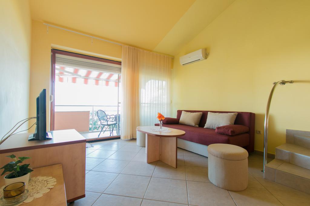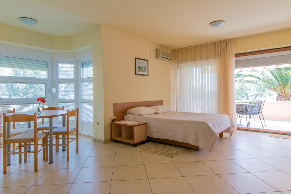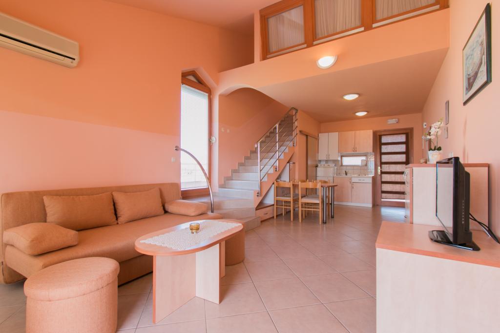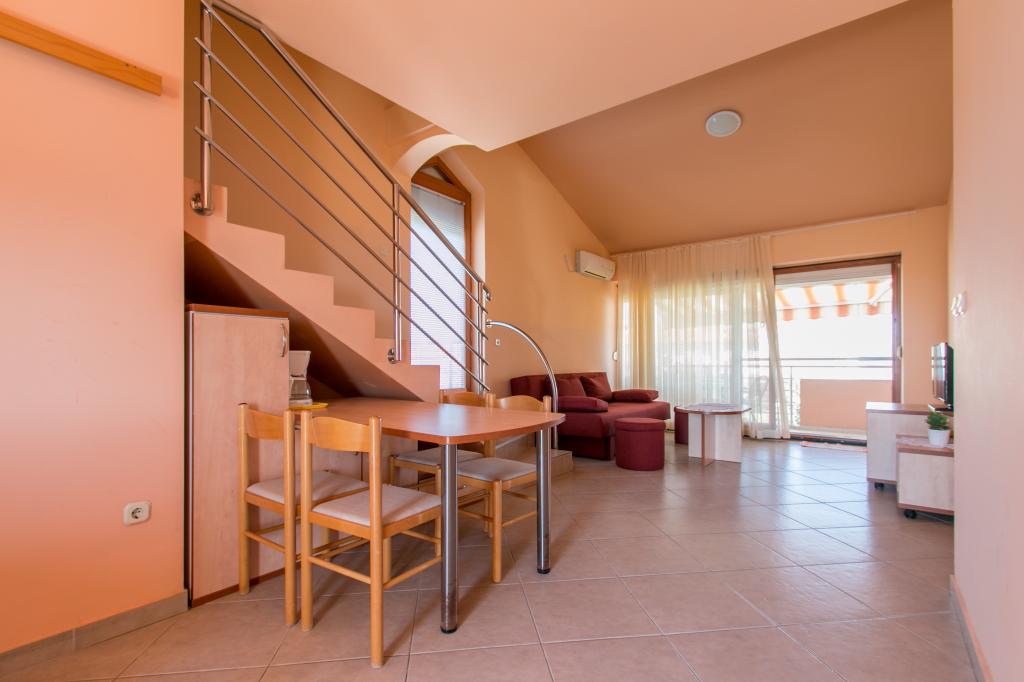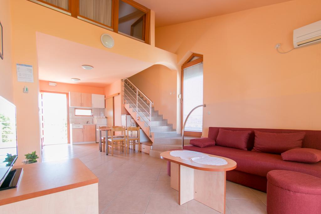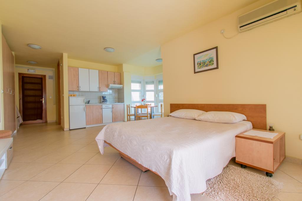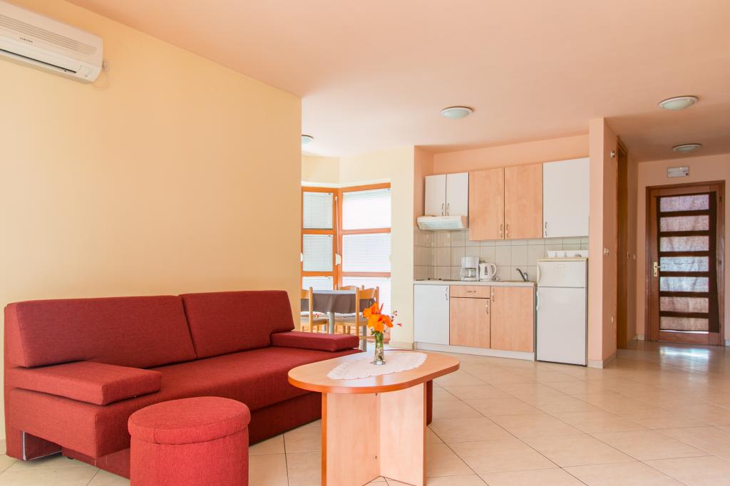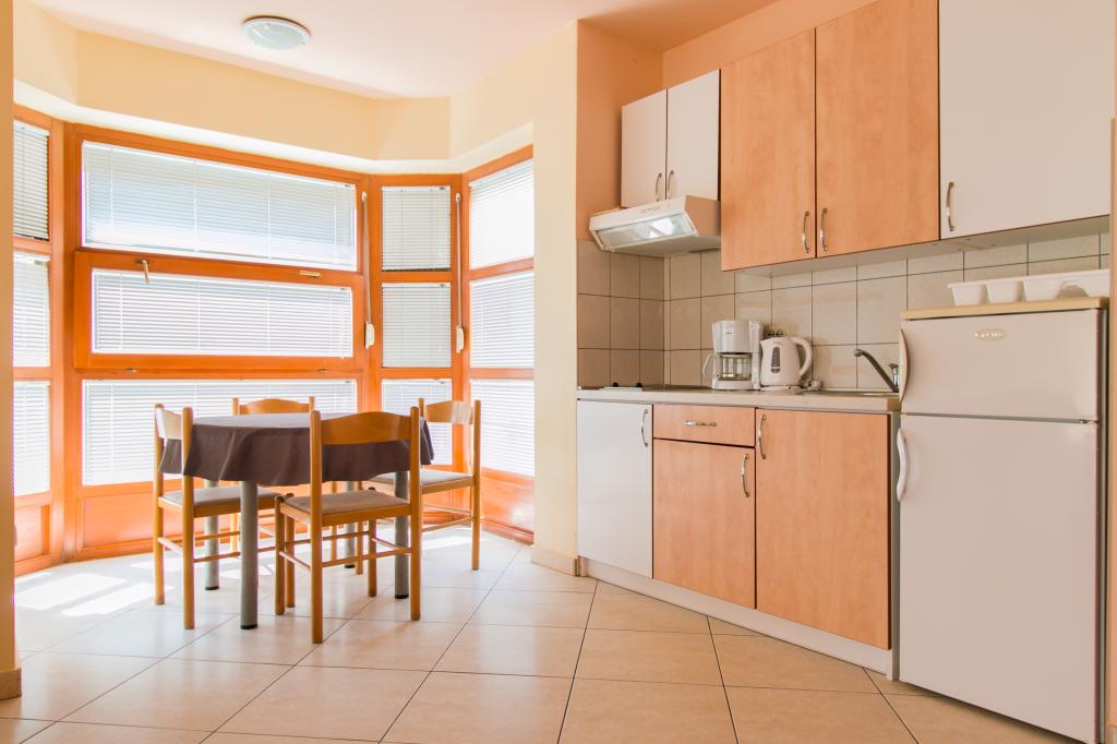 Apartamenty Matas znajdują się zaledwie kilka metrów od plaży! Prywatna plaża jest cicha, zadbana i pokryta kamykami. Piaszczysta plaża oddalona jest o około 500 metrów. Wszystkie apartamenty składają się z jednej sypialni (w apartamencie typu studio znajduje się tylko pokój dzienny), pokoju dziennego, łazienki, kuchni, tarasu lub balkonu i są odpowiednie dla maks. 4 osoby. Wszystkie apartamenty mają powierzchnię 64 m2, są dwupokojowe (sypialnia i salon/pokój dzienny), za wyjątkiem Ap. A2 (32 m2, maks. 2 osoby - sypialnia/salon) wyposażone są w klimatyzację, telewizję satelitarną, Wi-Fi i ekspres do kawy. W domu znajduje się również pralnia z pralką. W ogrodzie przy plaży znajduje się również prysznic ogrodowy i grill. Apartamenty są w pełni wyposażone w sztućce, talerze, pościel i ręczniki, dzięki czemu nie musisz niczego ze sobą zabierać.