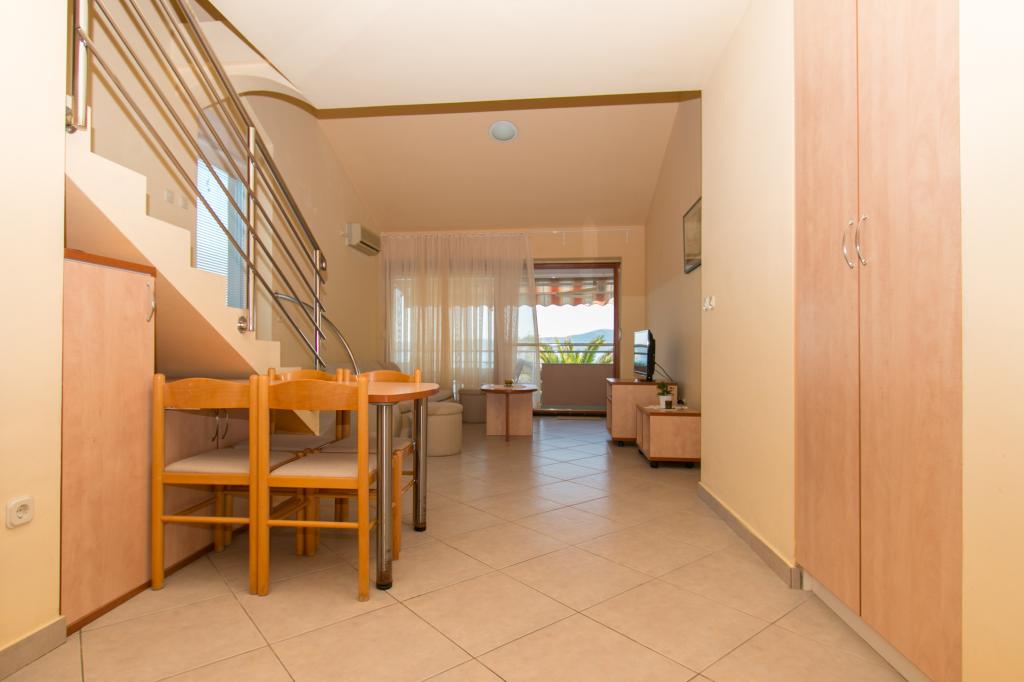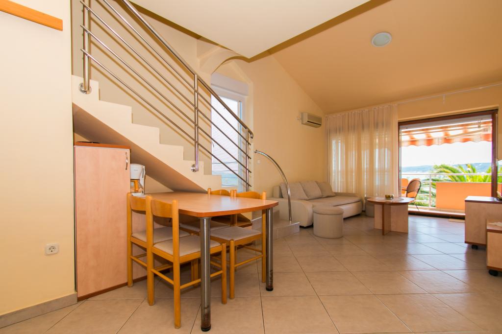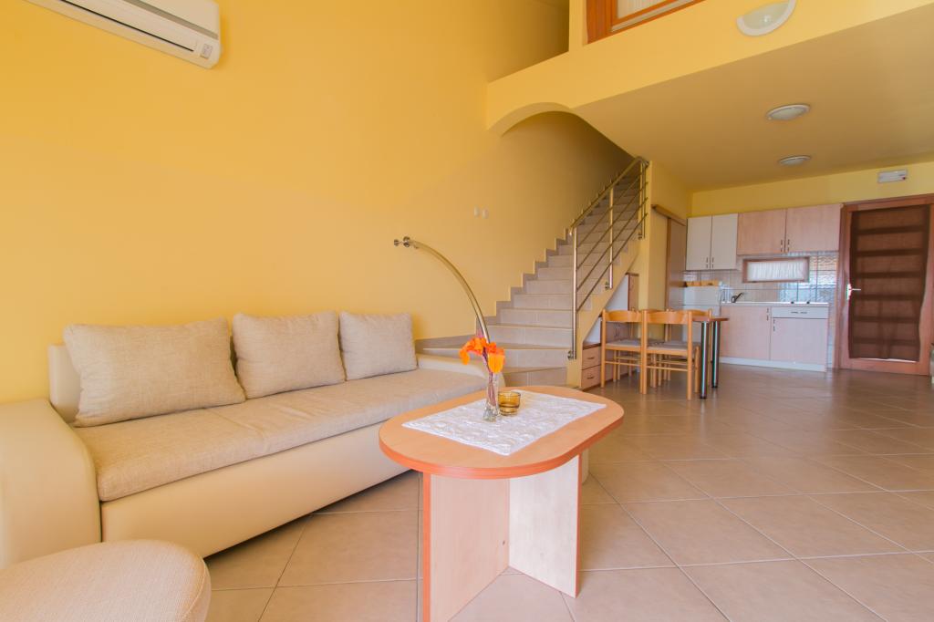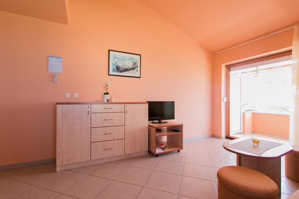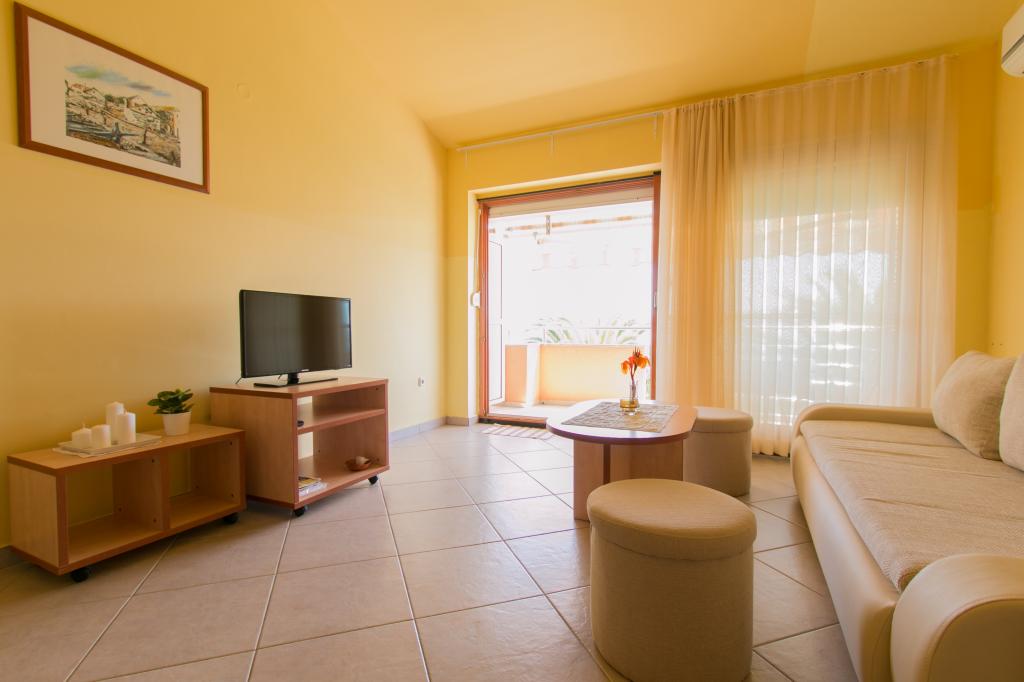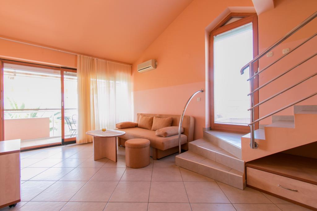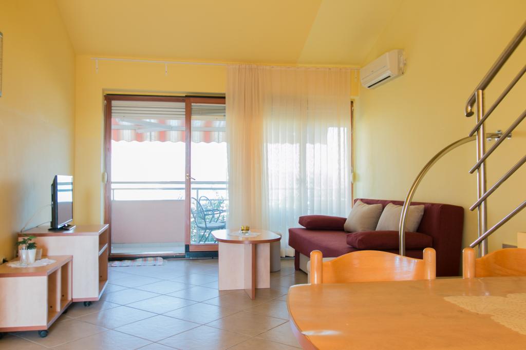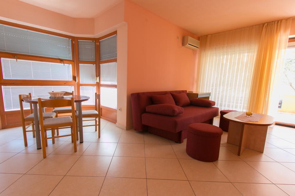 Apartamenty Matas znajdują się zaledwie kilka metrów od plaży! Prywatna plaża jest cicha, zadbana i pokryta kamykami. Piaszczysta plaża oddalona jest o około 500 metrów. Wszystkie apartamenty składają się z jednej sypialni (w apartamencie typu studio znajduje się tylko pokój dzienny), pokoju dziennego, łazienki, kuchni, tarasu lub balkonu i są odpowiednie dla maks. 4 osoby. Wszystkie apartamenty mają powierzchnię 64 m2, są dwupokojowe (sypialnia i salon/pokój dzienny), za wyjątkiem Ap. A2 (32 m2, maks. 2 osoby - sypialnia/salon) wyposażone są w klimatyzację, telewizję satelitarną, Wi-Fi i ekspres do kawy. W domu znajduje się również pralnia z pralką. W ogrodzie przy plaży znajduje się również prysznic ogrodowy i grill. Apartamenty są w pełni wyposażone w sztućce, talerze, pościel i ręczniki, dzięki czemu nie musisz niczego ze sobą zabierać.