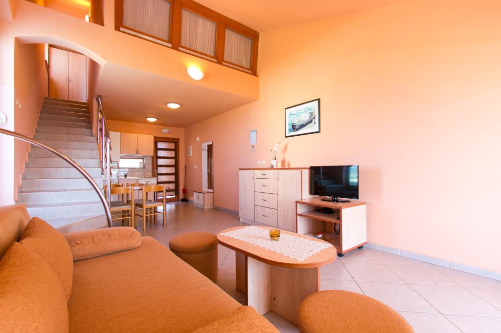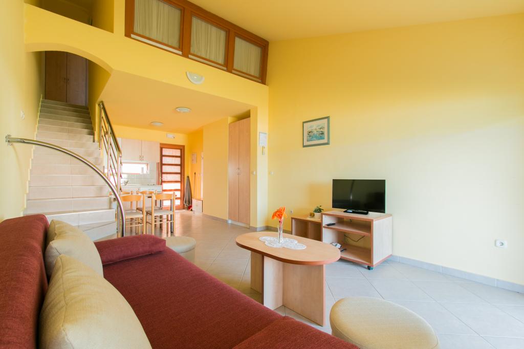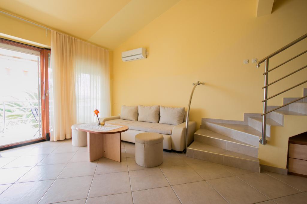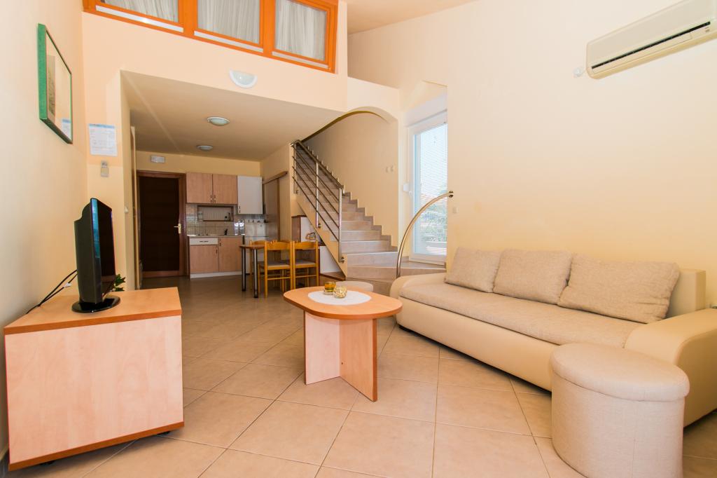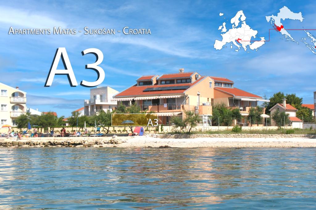 Apartamenty Matas A1 i A3 (dla 4 osób) oraz A2 (dla 2 osób) znajdują się na parterze. Apartamenty Matas B1, B2, B3, B4, B5 (dla 4 osób) znajdują się na pierwszym piętrze, typu duplex. Przestronny salon z kuchnią i jadalnią, a także duże drzwi tarasowe to idealne miejsce do wypoczynku. W apartamentach znajdziesz wszystko, czego potrzebujesz na wakacjach. Apartamenty są w pełni klimatyzowane i wyposażone w telewizję satelitarną, bezprzewodowy internet, kuchenkę, lodówkę i naczynia. Apartamenty składają się z sypialni (2 osoby), salonu (sofa dla 2 osób), kuchni, łazienki i przestronnego tarasu z pięknym widokiem na archipelag zadarski. Apartament A2 to studio dla 2 osób. W razie potrzeby udostępniamy również łóżeczko dla dzieci do 2 lat.