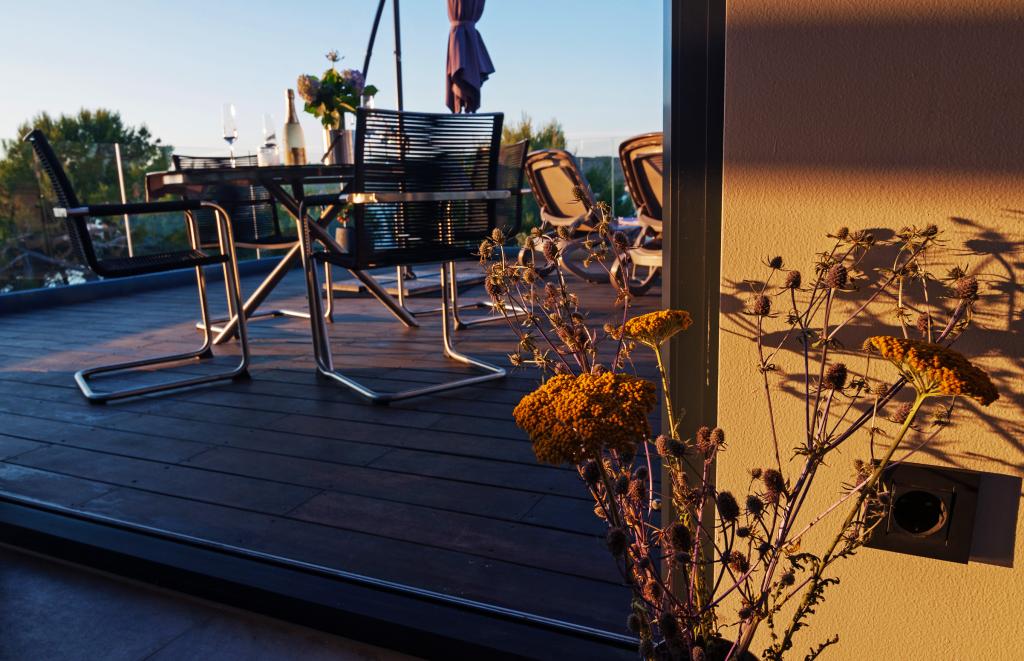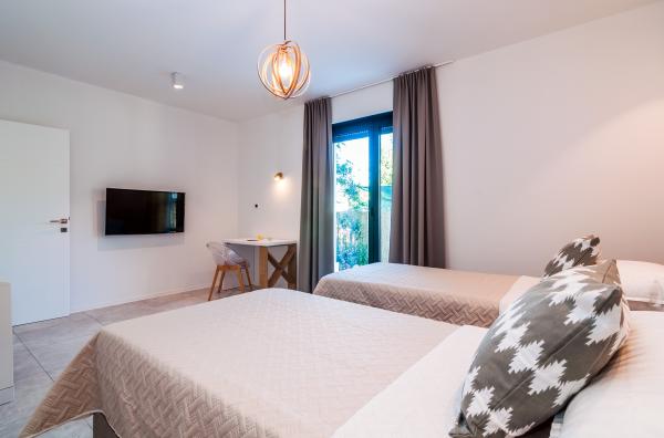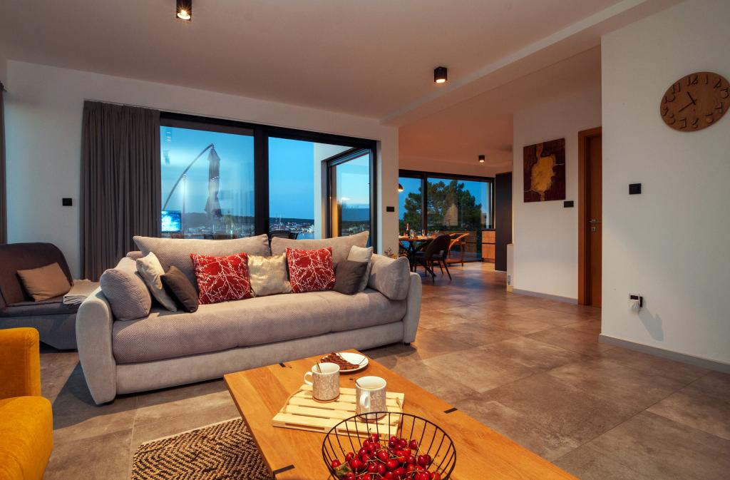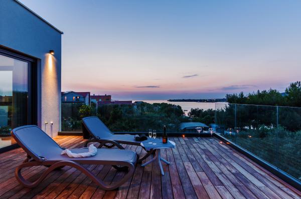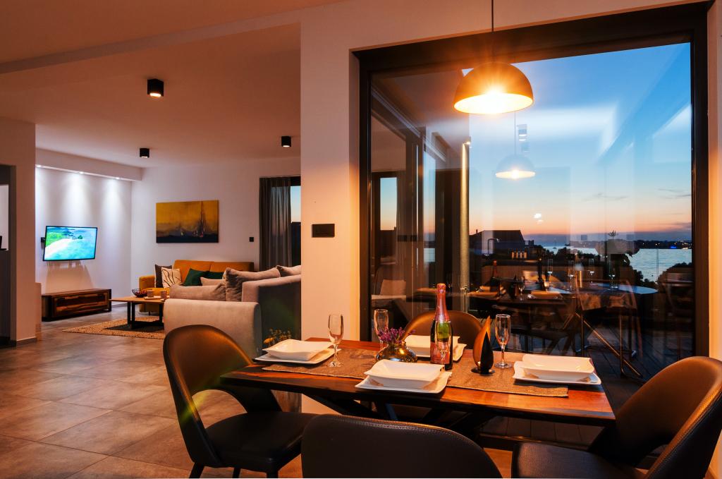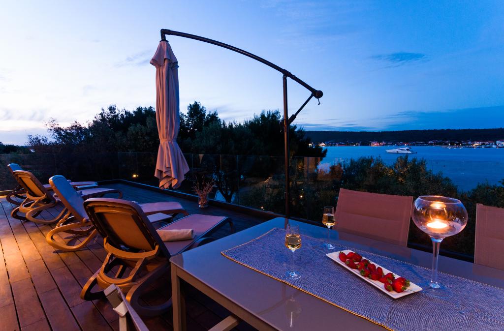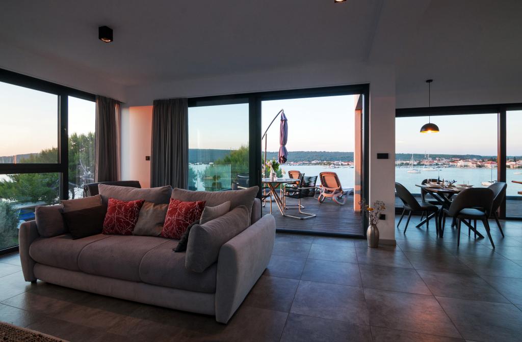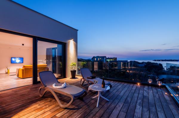 Vila Punta Aqua jest luksusowo urządzona w nowoczesnym i funkcjonalnym stylu, idealnym do cieszenia się oliwą i morzem z pięknym piaszczystym dnem. Jest tylko kilka metrów od plaży. Jest on podzielony na 3 piętrach. Na parterze znajduje się trzypokojowy apartament z 3 łazienkami i dodatkową toaletą oraz dużym tarasem o powierzchni 35m2. Na pierwszym piętrze jest apartament z dwoma sypialniami z 2 łazienkami i dodatkową toaletą. Duży balkon o powierzchni 37 m² jest idealnym miejscem na relaks i podziwianie pięknych widoków na morze. Na drugim piętrze znajduje się luksusowy apartament z jedną sypialnią, łazienką i dodatkową toaletą. Mieszkanie ma wspaniały przestronny balkon z widokiem na morze. Ta willa jest idealna do podziwiania, spędzania wakacji i spotkań towarzyskich z pięknym widokiem na morze.