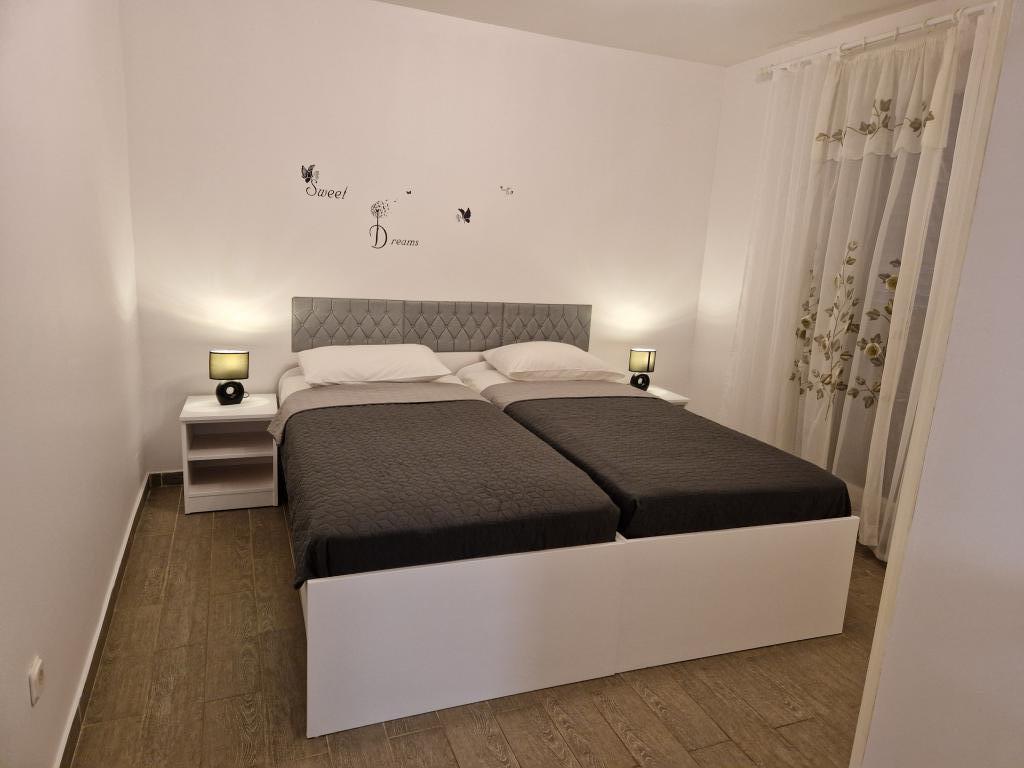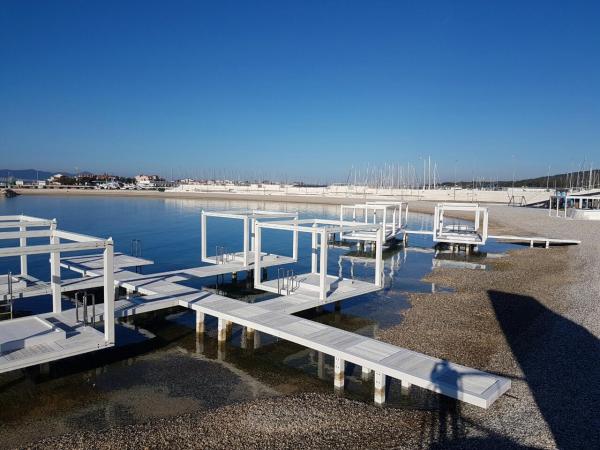 Dom z ogrodzonym podwórkiem w pobliżu mariny Dalmacija, w pełni umeblowany, odpowiedni dla rodzin ze zwierzętami, ogród, grill, klimatyzacja, spokojna okolica z małym natężeniem ruchu, dom położony pięć minut spacerem od plaży i pięć minut spacerem od centrum miasta, parking dla samochodu na podwórku z baldachimem, naturalny cień na podwórku zapewniany przez kilka gatunków śródziemnomorskich drzew. Bezpłatny internet.