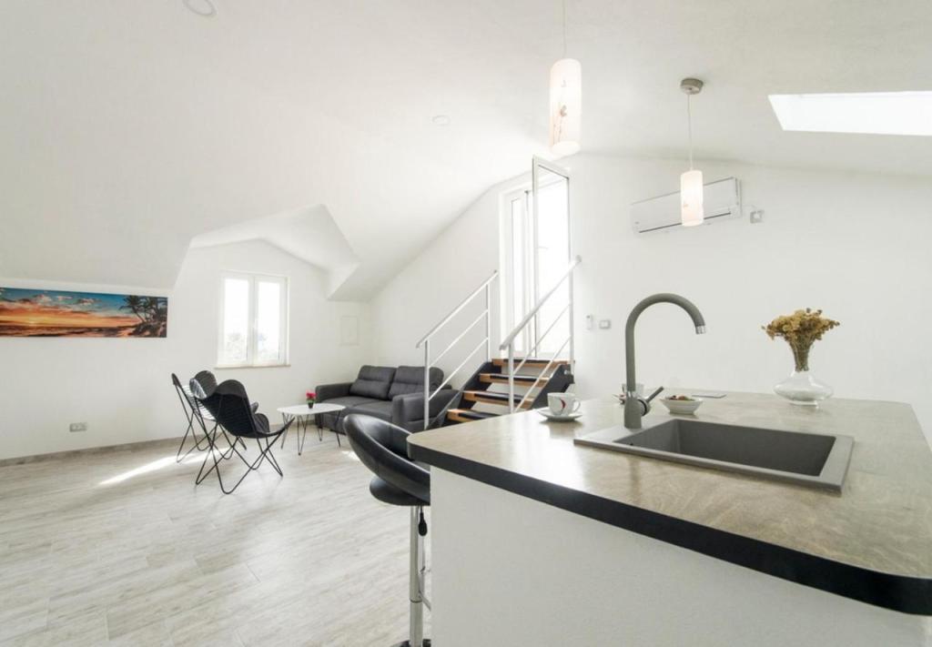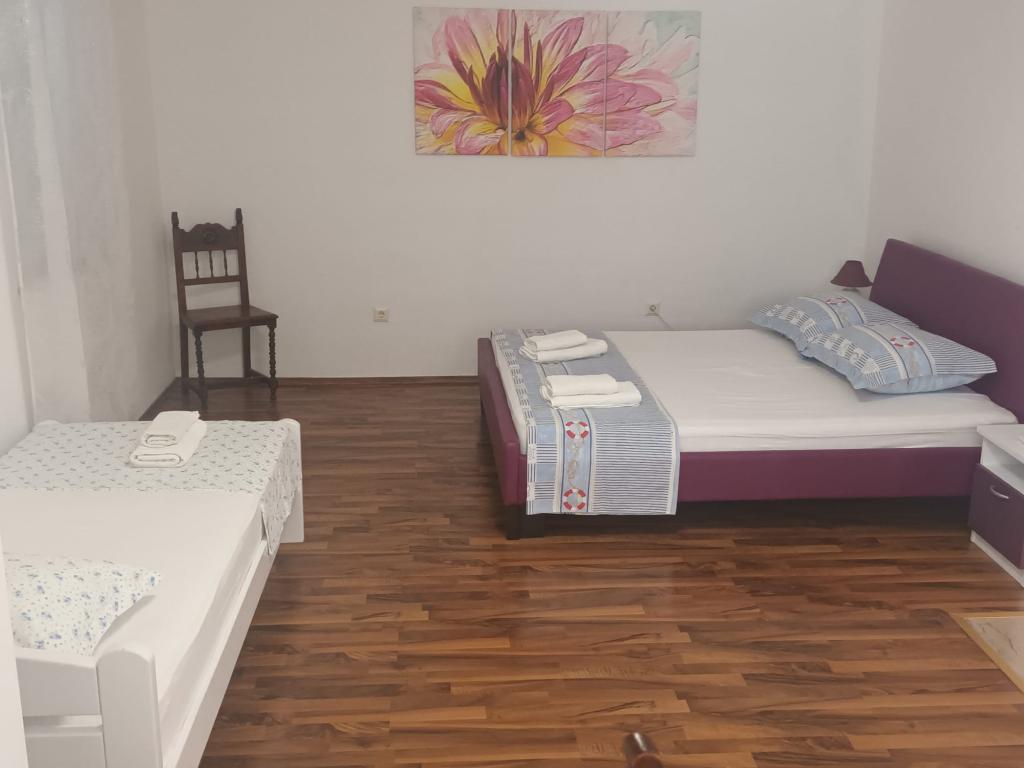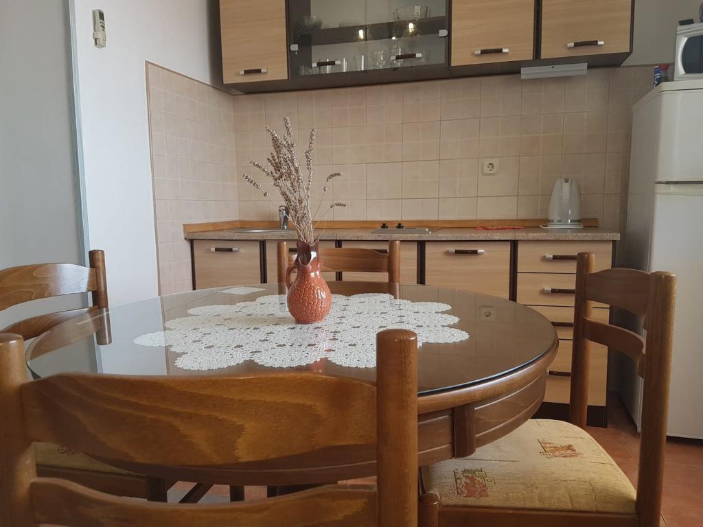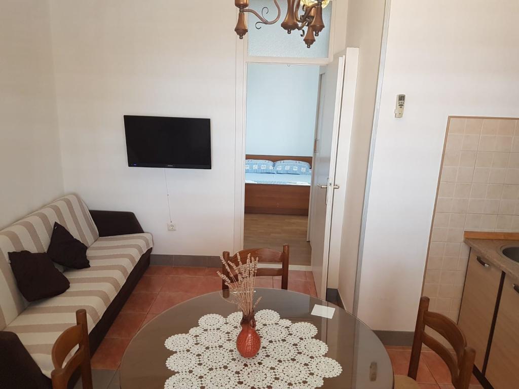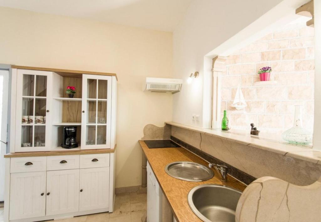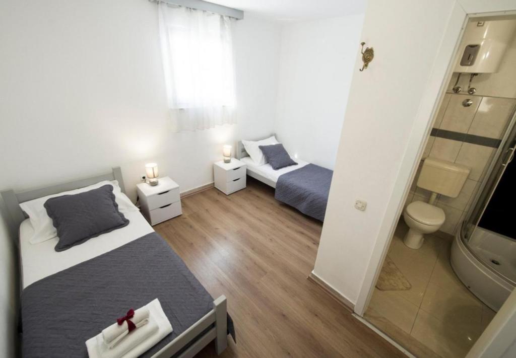 Bardzo polecamy nocleg w tym miejscu. Wspaniali gospodarze, bardzo troskliwi i życzliwi. Przywitali nas kieliszkiem domowej nalewki, a w czasie pobytu poczęstowali nas tutejszą grillowaną rybą i własnym czerwonym winem (można u pana zakupić przepyszne ryby bezpośrednio od znajomego rybaka). Można się bez problemu dogadać po polsku. Apartament czysty, chłodny i posiada bardzo wygodne łóżko. W mieszkaniu znajdują się dwie toalety (jedna z nich to WC). Świetnie wyposażona kuchnia. Obok budynku jest zacienione miejsce na pozostawienie i opłukanie deski SUP. Apartament posiada prywatne miejsce parkingowe kilkadziesiąt metrów dalej, ale jest miejsce pod samym wejściem, żeby zaparkować i wypakować bagaże. Całkiem blisko do plaży "Jezero" i to ją najbardziej polecamy w okolicy. Blisko do winiarni, kościoła, restauracji, Studenca i piekarni. Chętnie tam wrócimy, pierwszy raz tak bardzo nie chcieliśmy wracać do domu po wakacjach będąc w tym miejscu.