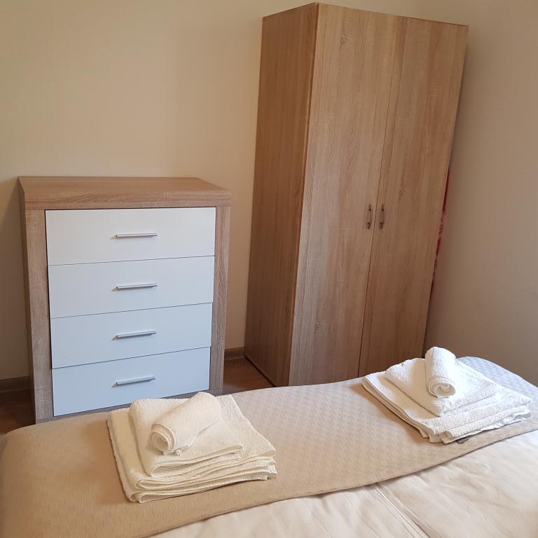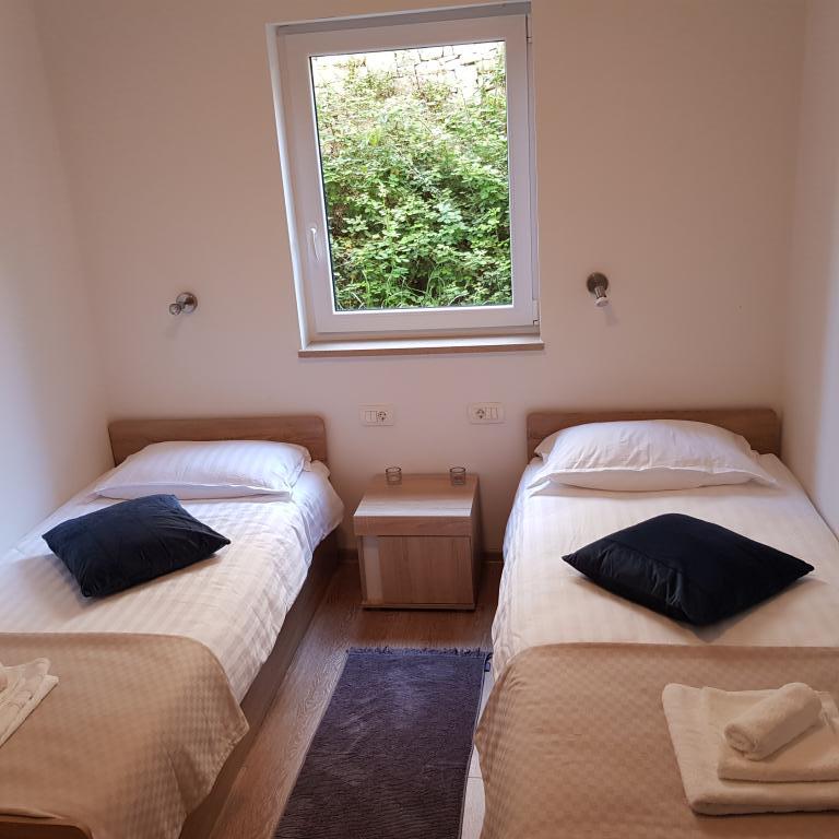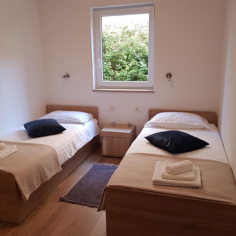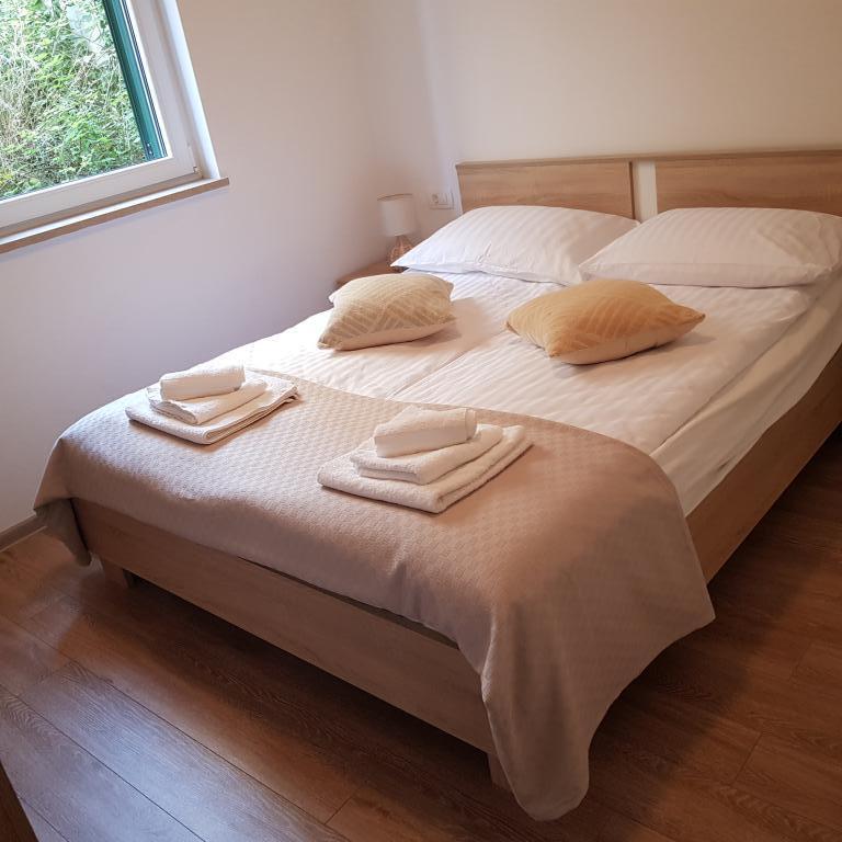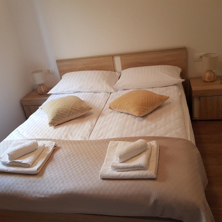 "Apartament Katerina" znajduje się w Supetarze, zaledwie kilka minut spacerem od morza i atrakcyjnych lokalnych plaż. Dwupokojowy apartament dla 6 osób (4 + 2) jest częścią miejskiej willi z balkonem (widok na ogród) oraz bezpłatnym parkingiem. Jest w pełni wyposażona kuchnia, jadalnia i salon, dwie sypialnie (jedna z łóżkiem małżeńskim, druga z dwoma pojedynczymi łóżkami), pokój dzienny (z rozkładaną sofą) oraz łazienka z prysznicem i pralką. Apartament jest klimatyzowany i oferuje bezpłatne WiFi oraz telewizor z płaskim ekranem. W ogrodzie znajduje się grill, dostępny dla wszystkich lokatorów budynku. Supetar to małe miasteczko w północnej części wyspy, dobrze połączone promem ze Splitem. To doskonała baza wypadowa do zwiedzania wyspy.