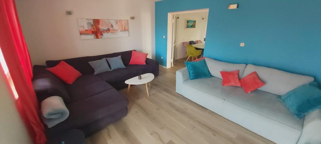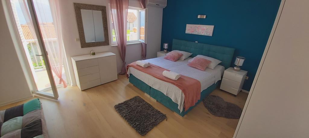 Komfortowe iw pełni wyposażone apartamenty w spokojnej części Supetar z pięknym widokiem na morze. Piękne otoczenie dla dzieci. W sąsiedztwie centrum handlowego while placu, ja centrum i innych obiektów 5-10 min spacerem.