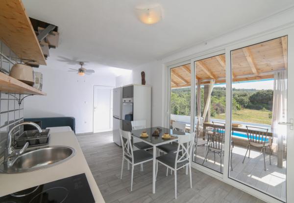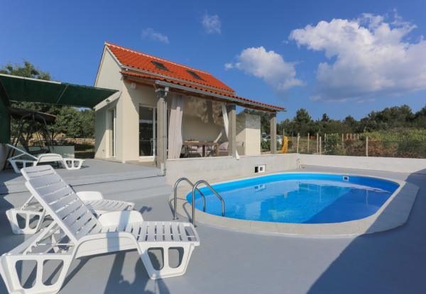 Wynajem domu z dużym basenem (8 x 4, 20 metrów), w miejscowości Mirca, tylko 3 km od centrum turystycznego - miasta Supetar. Dom jest w kameralnej lokalizacji i ukryty przed widokiem. Znajduje się na działce o powierzchni 4000 m2, otoczonej trawnikiem, sadem i winnicą. Dom jest na dwóch piętrach. Na parterze (24 m2) znajduje się salon, kuchnia i łazienka z prysznicem. Wewnętrzne schody prowadzą na poddasze, gdzie znajdują się dwie sypialnie, jedna z podwójnym łóżkiem, a druga z oddzielnymi łóżkami. Taras jest zadaszony, a otoczenie basenu jest idealne do opalania. Cała ta przestrzeń, którą masz dla siebie. Idealny dla dzieci w zwierzętach domowych. Do Bol i słynnej plaży Zlatni Rat można dojechać samochodem w 40 minut.