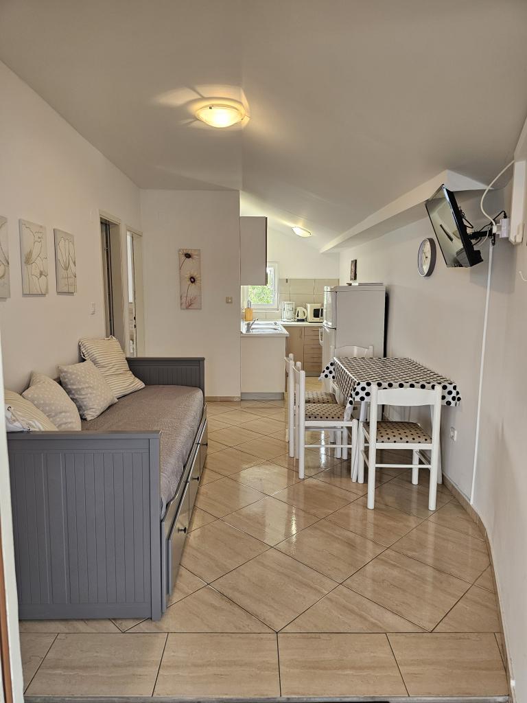 Spedzilismy tam tydzien czasu w dwie rodziny. W sumie czworo doroslych i czworo dzieci w wieku od 4 do 11 lat. Kwatera bardzo dobrze wyposazona, czysto, przyjemnie, swietne polozenie. Dwa fantastyczne tarasy. Morze tuz obok z piaszczystym dnem i plytkie, wiec dzieci mogly spokojnie bawic sie nawet 50m od brzegu. Tuz obok sklep z najpotrzebniejszymi rzeczami, a kilometr dalej troche wiekszy market. Nad morzem barek i restauracja, wiec mozna cos zjesc w ciagu dnia. Bardzo polecam!